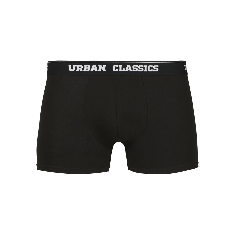 Короткая упаковка боксеров «пять в одном» Urban Classics предлагает выбор функционального мужского нижнего белья черного, белого и красного цветов. Мотивы боксеров: две горизонтальные полосы, надпись с логотипом Urban Classics по всей поверхности и два варианта однотонных цветов. Все боксеры имеют черный эластичный пояс с надписью Urban Classics. Тонкий материал обеспечивает оптимальный комфорт эластичного трикотажа, а также плавную и надежную посадку.