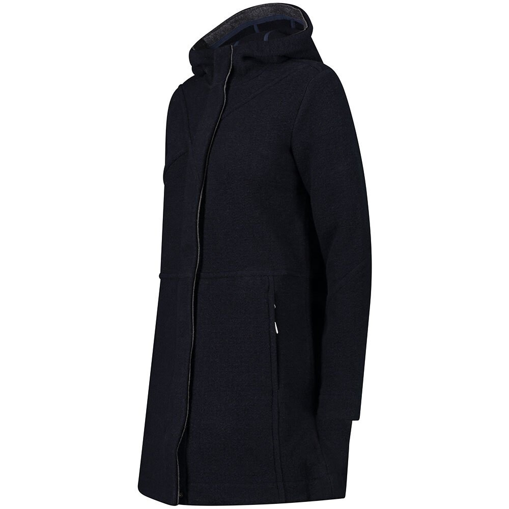Женское пальто из Wooltech, ткани, напоминающей шерсть, сочетающей в себе все технические характеристики используемых синтетических волокон.