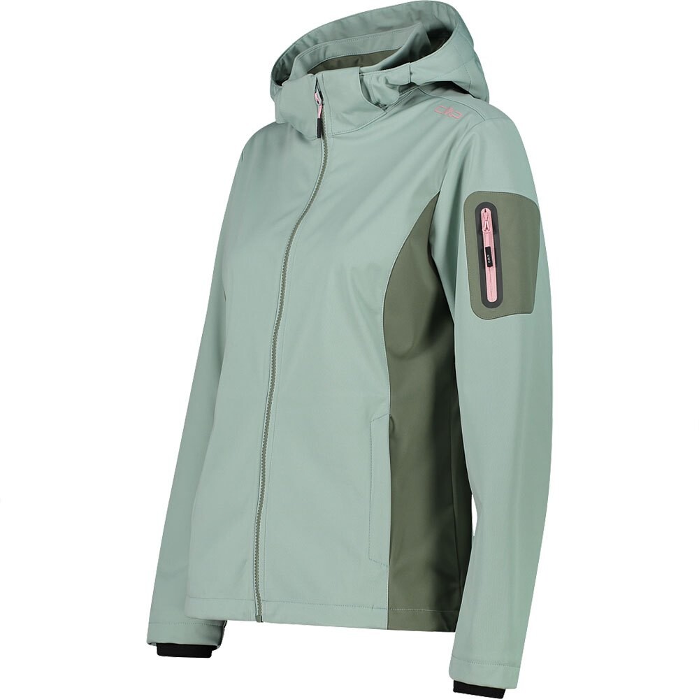 Модель культового трехслойного софтшелла CMP без подкладки из флиса! Расклешенная куртка из Light Softshell со съемным капюшоном, идеальная для весенних прогулок как в горах, так и в городе, ее вес всего 180 г/м2.