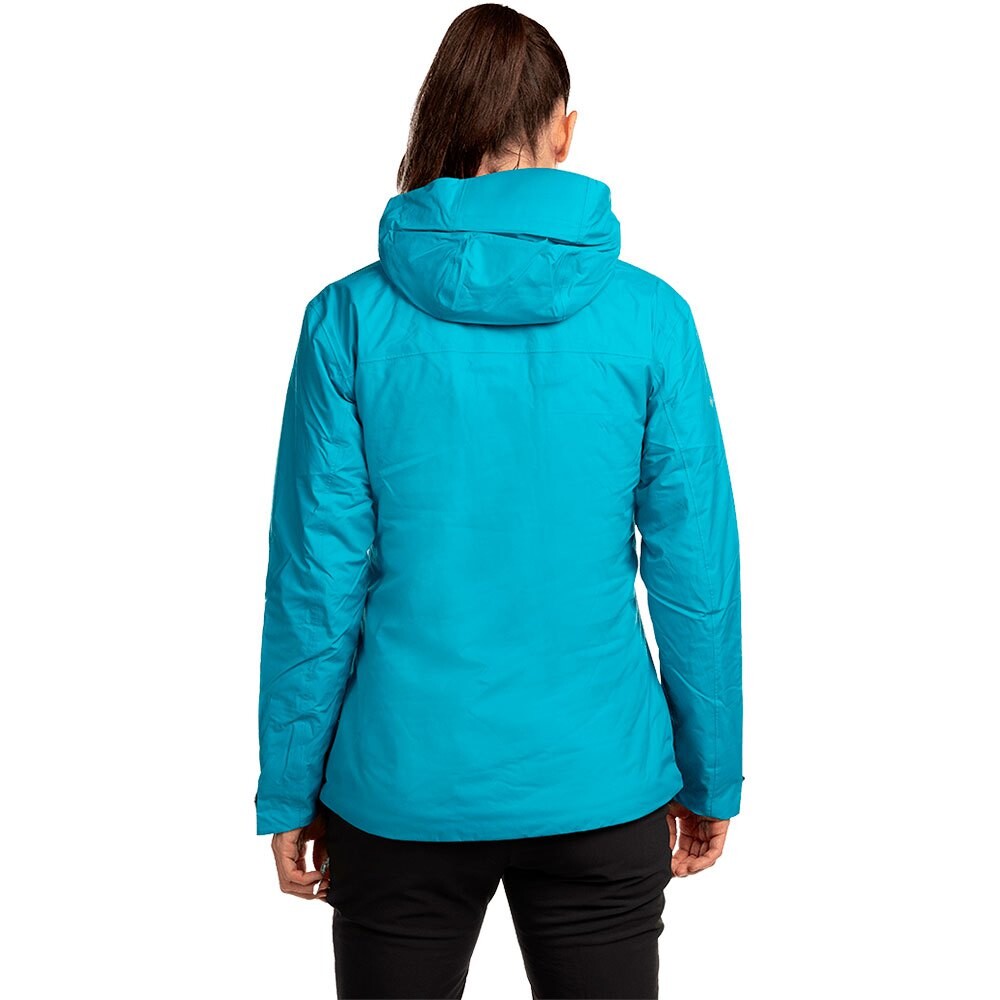 Фиксированный капюшон - Полужесткий козырек - Регулировка капюшона по лицу - Регулировка объема и лица на капюшоне - Герметичные швы - Водонепроницаемые молнии - Водонепроницаемая и дышащая мембрана - Вшитая в рукав - Продольная молния - Регулируемые манжеты на липучке - Регулируемый низ с эластичным шнуром и стопорами - Мягкое волокно теплоизоляция - Подкладка из термокарманов - Передние карманы с клапаном на молнии.