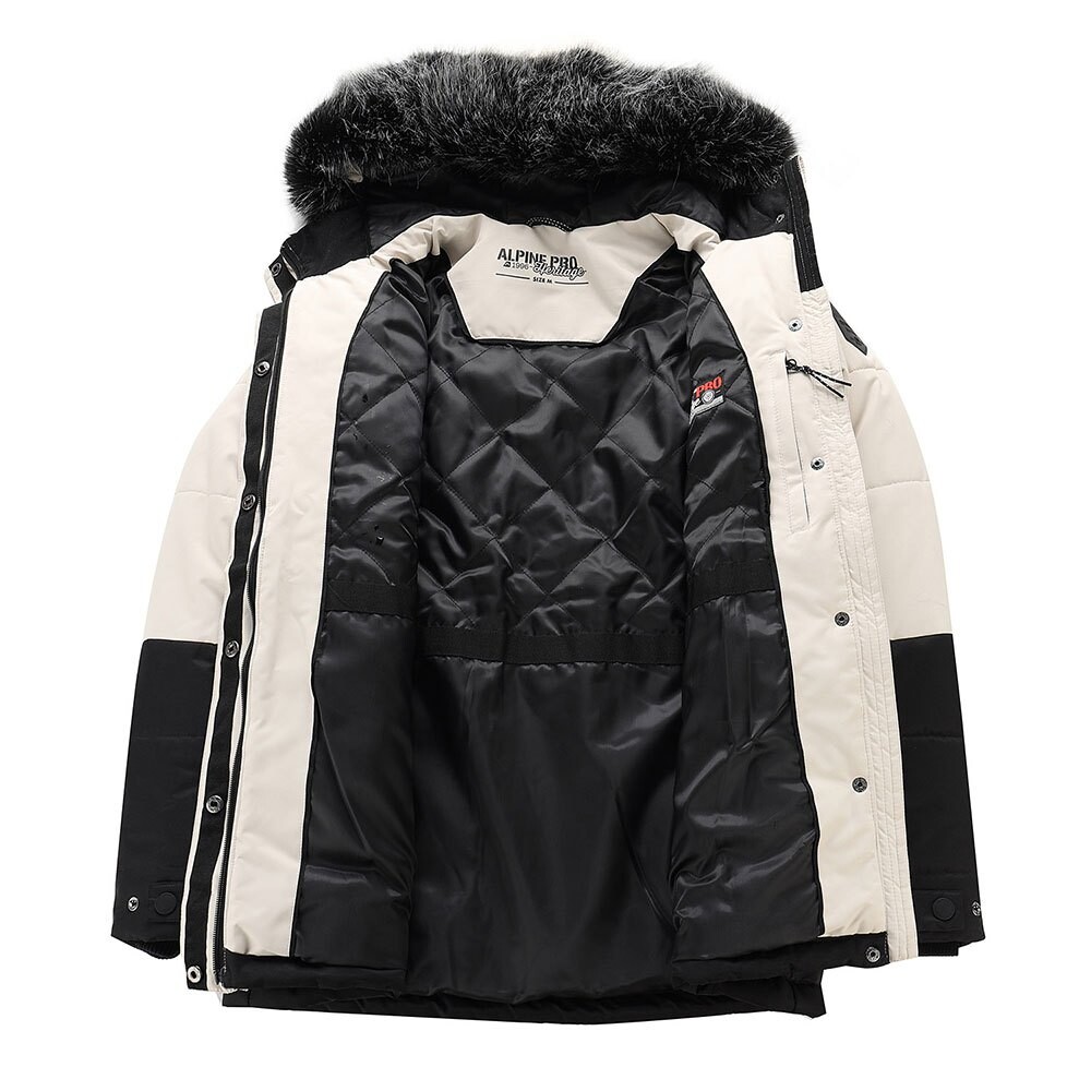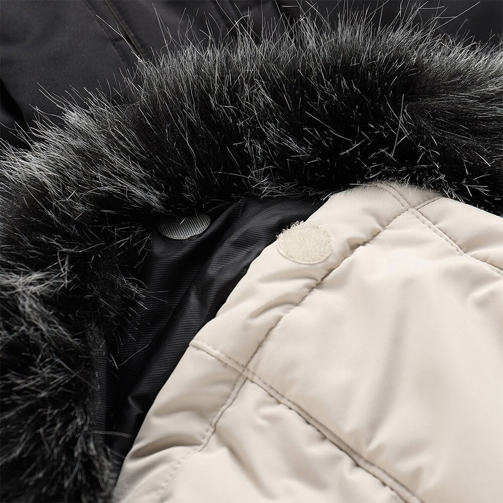 материал водонепроницаемый, паропроницаемый, ветроустойчивый / отделка материала мембрана PTX, водяной столб 3 000 мм, паропроницаемость 3 000 г/м2/24 часа, DWR / толстый утеплитель / отрезной стандартный крой / капюшон несъемный, на утяжках / мех съемный / манжеты рукавов с регулировкой на кнопках, с манжетой в рубчик внутри / нижняя часть с регулировкой ширины / карманов всего 5 / нашивка на рукаве.