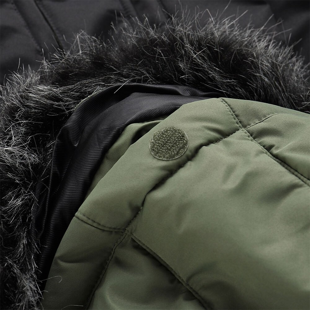 материал водонепроницаемый, паропроницаемый, ветроустойчивый / отделка материала мембрана PTX, водяной столб 3 000 мм, паропроницаемость 3 000 г/м2/24 часа, DWR / толстый утеплитель / отрезной стандартный крой / капюшон несъемный, на утяжках / мех съемный / манжеты рукавов с регулировкой на кнопках, с манжетой в рубчик внутри / нижняя часть с регулировкой ширины / карманов всего 5 / нашивка на рукаве.