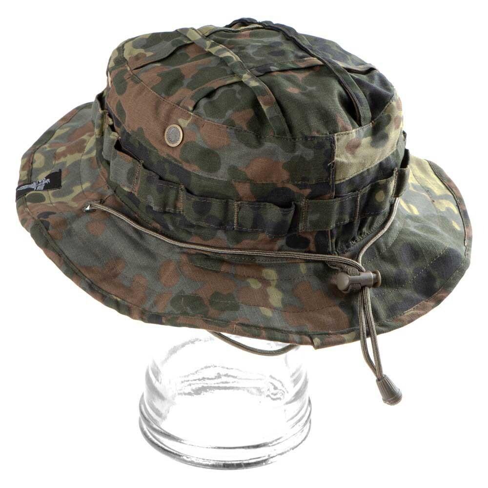 Mod 2 Boonie Hat изготовлен из высококачественного текстиля рип-стоп. и имеет несколько улучшений по сравнению с исходным дизайном. Край шляпы был слегка заужен, чтобы предотвратить зацепление за кусты и густую листву, не ухудшив при этом эксплуатационные характеристики шляпы. Еще одна модификация — добавление куска ткани, позволяющего прикреплять ветки и растительность. То же самое было сделано и с верхом шляпы в виде четырех скрещенных кусков ткани. Вместе они повышают камуфляжные свойства шляпы и разрушают силуэт головы.