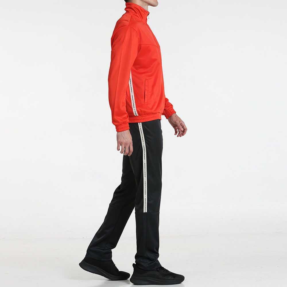СПОРТИВНЫЙ КОСТЮМ ИЗ ПОЛИЭСТЕРНОГО ТРИКО, БЕЗ КАПЮШОНА, С КОНТРАСТНЫМИ ВСТАВКАМИ И ПЕРСОНАЛЬНОЙ ЛЕНТОЙ НА БРЮКАХ.