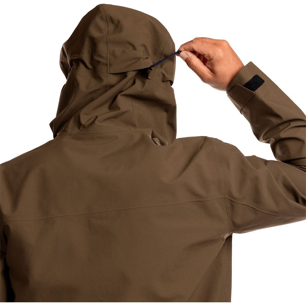Фиксированный капюшон - Капюшон с регулировкой объема и лица - Герметичные швы - Водонепроницаемая и дышащая мембрана - Регулируемые манжеты на липучке - Регулируемый низ с эластичным шнуром и стопорами - Передние карманы с клапанами на молнии.