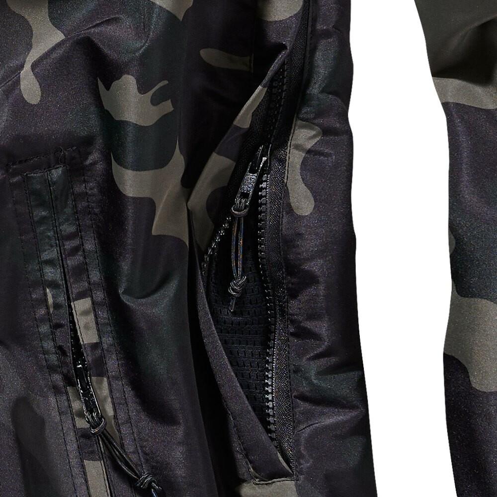 Ветро- и водоотталкивающая ткань, сетчатая подкладка, капюшон на кулиске, большой нагрудный карман на молнии, 2 боковых кармана на молнии, манжеты, боковое вентиляционное отверстие, все молнии с бегунками.