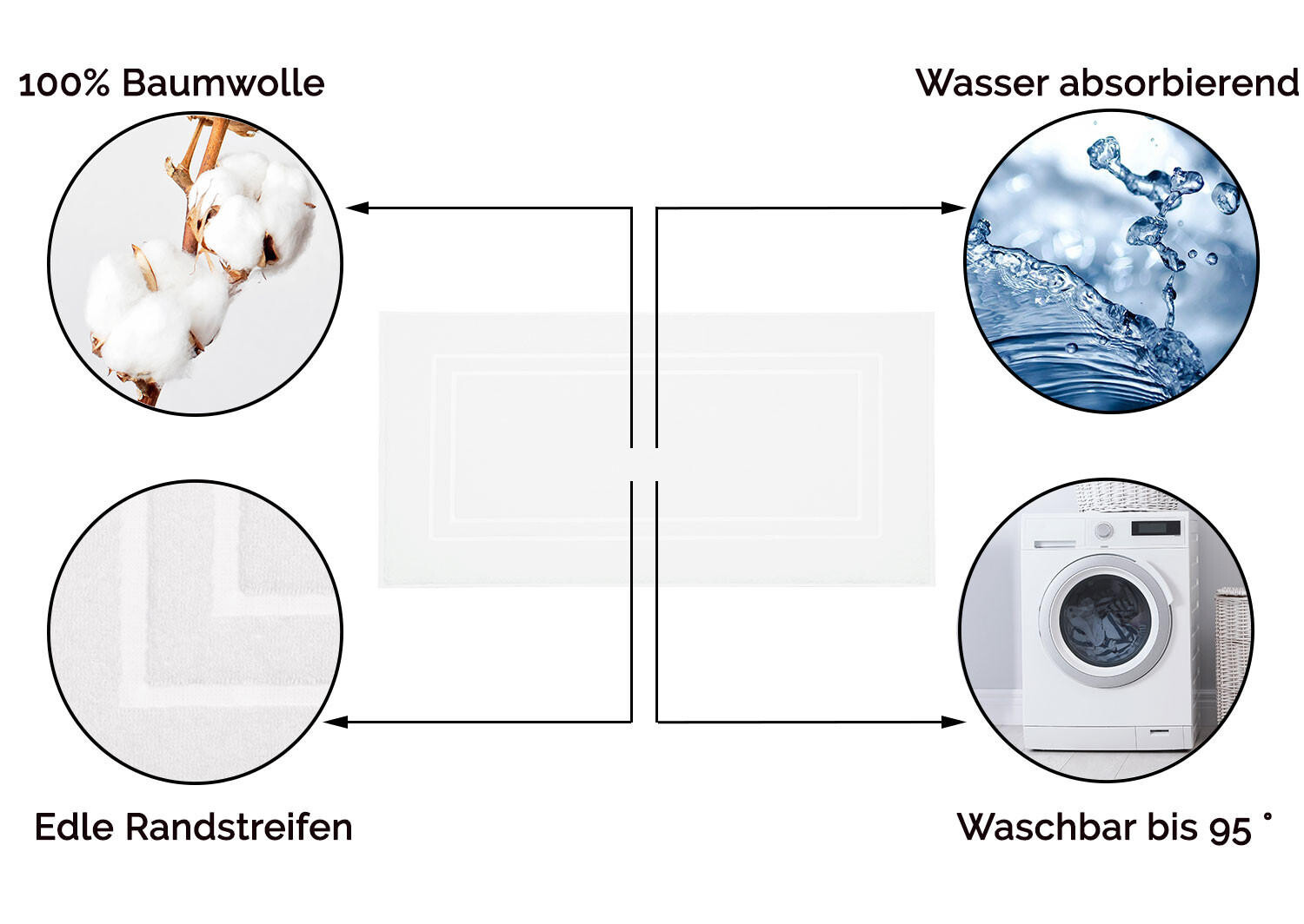 Коврик для ванной из 100% хлопка (скрученная махра) с поверхностной плотностью около 630 г/кв.м впечатляет двумя элегантными полосами по краям и кромкой по всему периметру. Этот материал делает коврики для ванной чрезвычайно впитывающими и долговечными. Махровые коврики можно стирать при температуре до 95°C, они устойчивы к кипячению и воздействию хлора. Даже после частой стирки коврики для ванной не теряют своей прочности. Вы получите эти коврики для ванной в практичном наборе из 2 штук. Благодаря неподвластному времени дизайну коврики для ванной комнаты гармонично впишутся в любую ванную комнату.