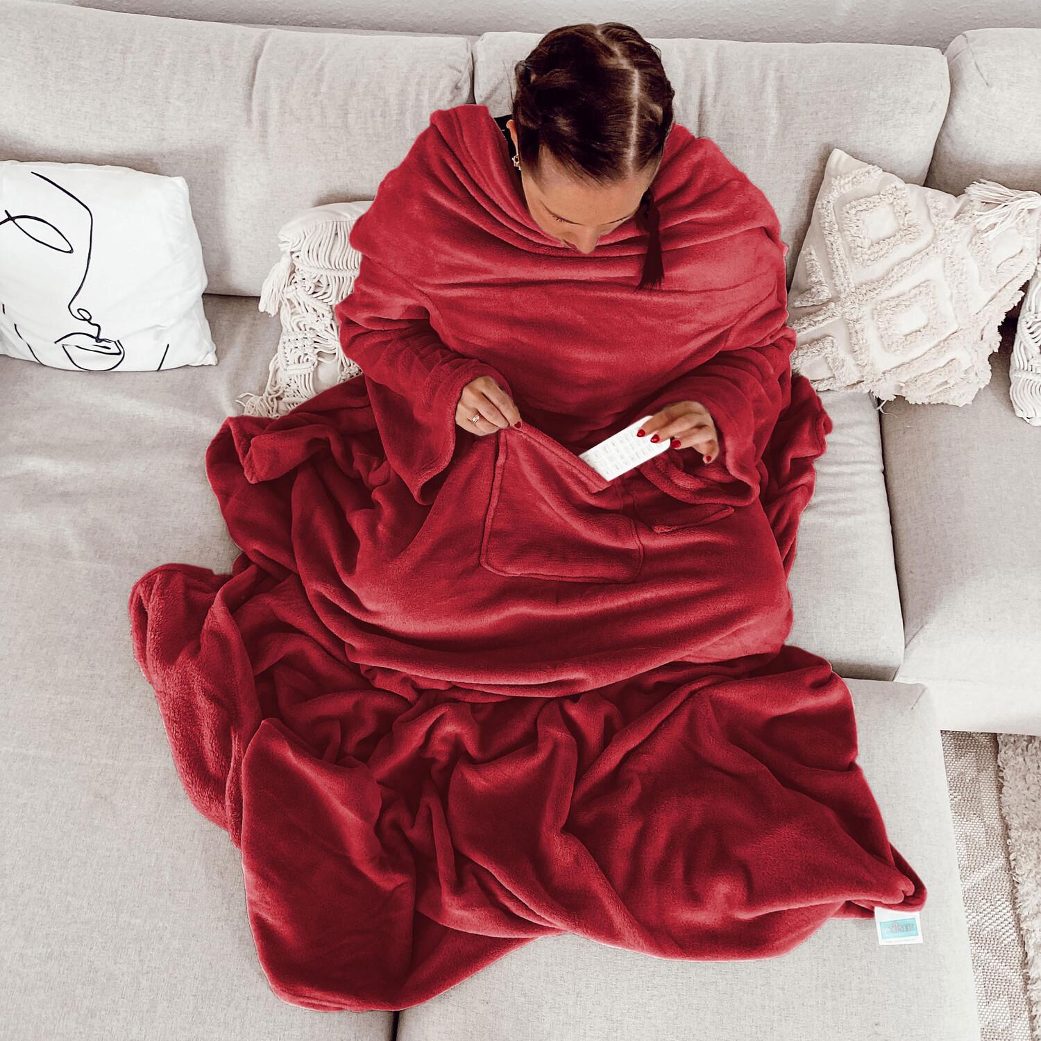 Наслаждайтесь расслабляющим часом в своем новом одеяле! Живое пальто вашего любимого однотонного цвета обязательно впишется в ваш дом. Идеальный компаньон в холодные дни с двумя пришитыми карманами, в которых достаточно места для мобильных телефонов, пультов дистанционного управления, планшетов и многого другого. Встроенный карман для ног гарантирует, что вашим ногам всегда будет тепло. Создайте благополучие в своем доме с этим одеялом или подарите красивое красное приятное одеяло своим близким! Практичный плед для дивана изготовлен из 100% полиэстера плотностью 240 г/м². Учитывая материал, одеяло особенно прочное, пушистое и приятное для кожи. Одеяло подходит для аллергиков, за ним легко ухаживать, его можно стирать при температуре до 95°C и, конечно же, можно сушить в сушильной машине. Это означает, что гигиеническое одеяло для чтения останется приятным и мягким, и вы будете с ним дружить долгое время. Подарите одеяло своим близким на Рождество, день рождения или Пасху.