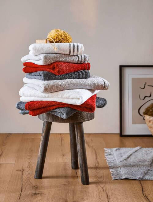 Для ежедневного ухода за телом отличным выбором станет банное полотенце размером примерно 67 x 140 см из чистого хлопка красного цвета от VOSSEN. Натуральные волокна и махровая поверхность делают его приятным на ощупь и чрезвычайно впитывающим. Для обеспечения идеальной гигиены плетеный аксессуар для ванной комнаты с декоративной окантовкой из трех полосок можно стирать в стиральной машине при температуре до 60°C. Петлю для подвешивания удобно использовать рядом с душевой кабиной. Хлопковое банное полотенце красного цвета от VOSSEN, которое создаст ощущение благополучия в вашем доме!