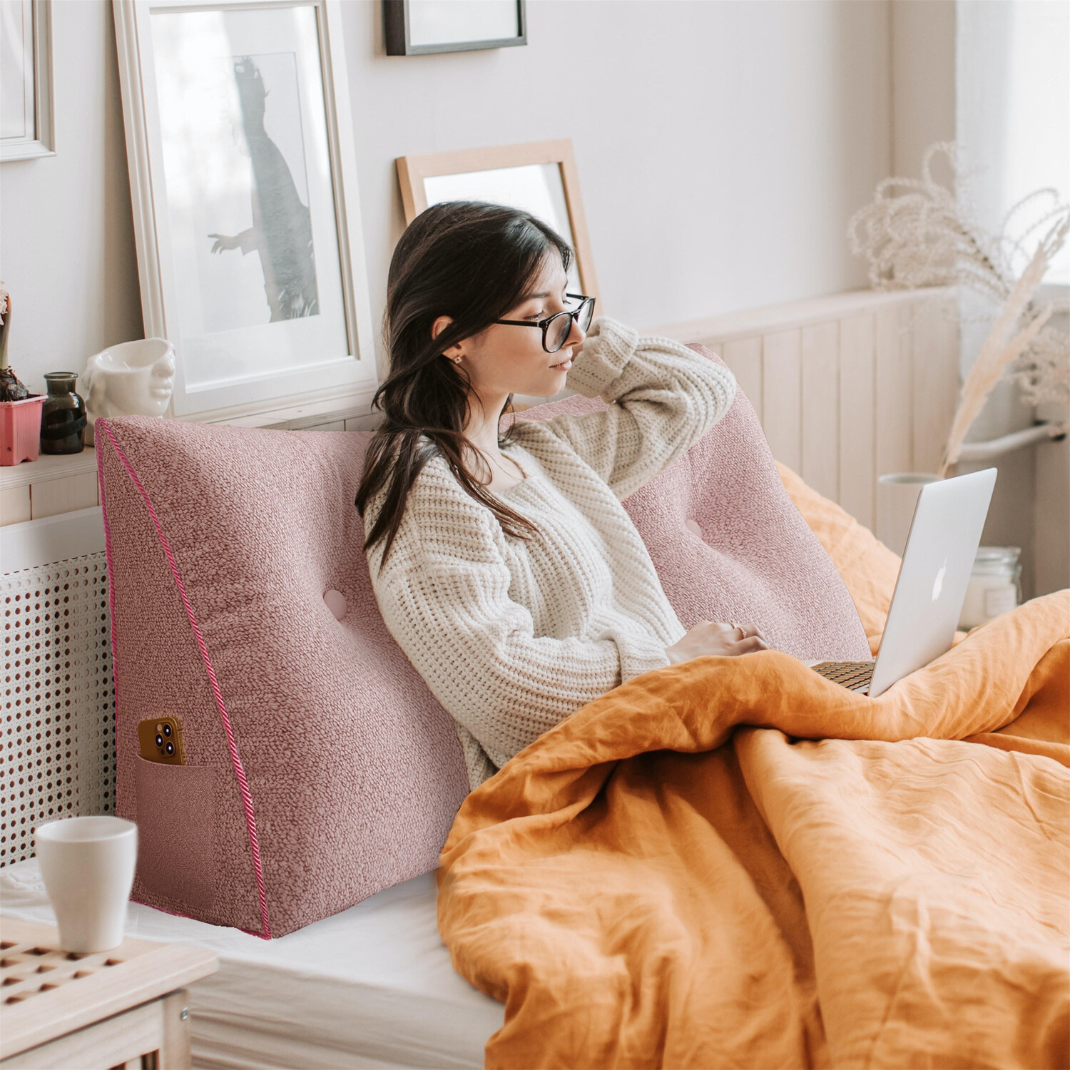 Когда вы сидите в постели и читаете или смотрите телевизор, эта большая трехмерная треугольная подушка для спины может обеспечить удобную, стабильную и достаточную эластичную поддержку спины нескольким людям одновременно. Как бы вы ни опирались на эту подушку для чтения, она не соскользнет и не свалится, как обычные подушки для кровати. Подушка для изголовья не требует установки, проста в использовании и закрывает зазор между изголовьем и матрасом. В небольшие карманы с обеих сторон подушки на танкетке можно легко разместить небольшие повседневные предметы, такие как сотовые телефоны, пульты дистанционного управления, очки и ручки. Имеет 9 стандартных размеров, подходящих для кроватей разной ширины. Помимо прочего, подушка шириной 200 см легко трансформирует кушетку/односпальную кровать в диван/диван. Кроме того, эту подушку можно использовать во многих сценариях, таких как: Например, подушка для общежития колледжа, глубокая спинка дивана, подушка для прицепа для автофургона, подушка для кроватки и т. д. Это также может помочь облегчить такие проблемы, как кислотный рефлюкс и боли в спине после операции. Другие способы использования ждут вас. КОНСТРУКЦИЯ - Подушка наполнена гипоаллергенными полиэфирными волокнами, которые повторяют форму вашего тела. - Чехол изготовлен из красивой, прочной короткой плюшевой ткани и имеет двустороннюю молнию для легкого снятия. Примечания: Товар будет отправлен в вакуумной упаковке. Разверните и дайте постоять 24 часа (или энергично похлопайте/месите, чтобы придать форму). - Если вы видите небольшую часть белой подкладки через петлю, это не дефект ткани, а скорее оригинальный дизайн. Пожалуйста, постарайтесь сдвинуть колпачок с пуговицами так, чтобы он закрывал подкладку. - Мобильные телефоны не входят в комплект поставки.