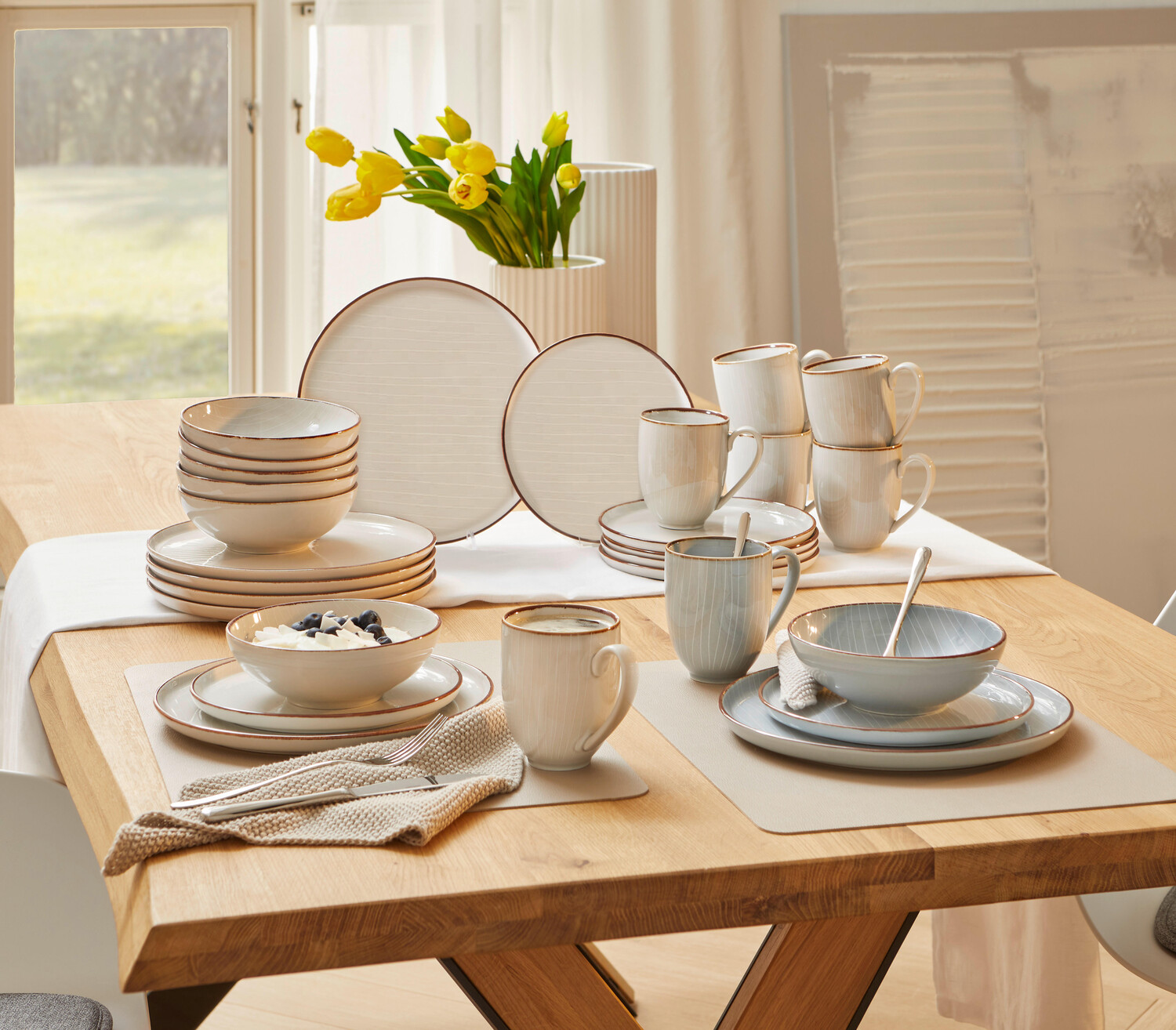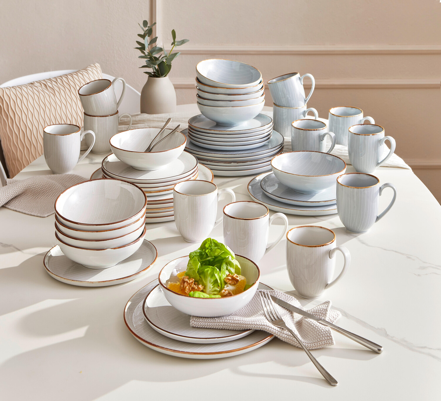 С этой комбинированной услугой для 6 человек в сером цвете ваши кулинарные творения станут еще вкуснее. Набор из 24 предметов состоит из 6 обеденных тарелок, мисок для хлопьев, кофейных чашек и десертных тарелок. Таким образом, у вас всегда есть что-нибудь, чем можно полакомиться, от завтрака до послеобеденного кофе и ужина. Практично: для очистки просто поместите набор для микроволновой печи и духовки в посудомоечную машину. Фарфоровый ансамбль также заслуживает внимания с точки зрения дизайна. Нежный цвет подчеркнут изящными линиями, а золотистый край придает элегантный акцент. Глазурь в глазури придает поверхности характерный блестящий вид. Такая комбинированная служба (6 человек) серого цвета не должна отсутствовать ни в одном доме!