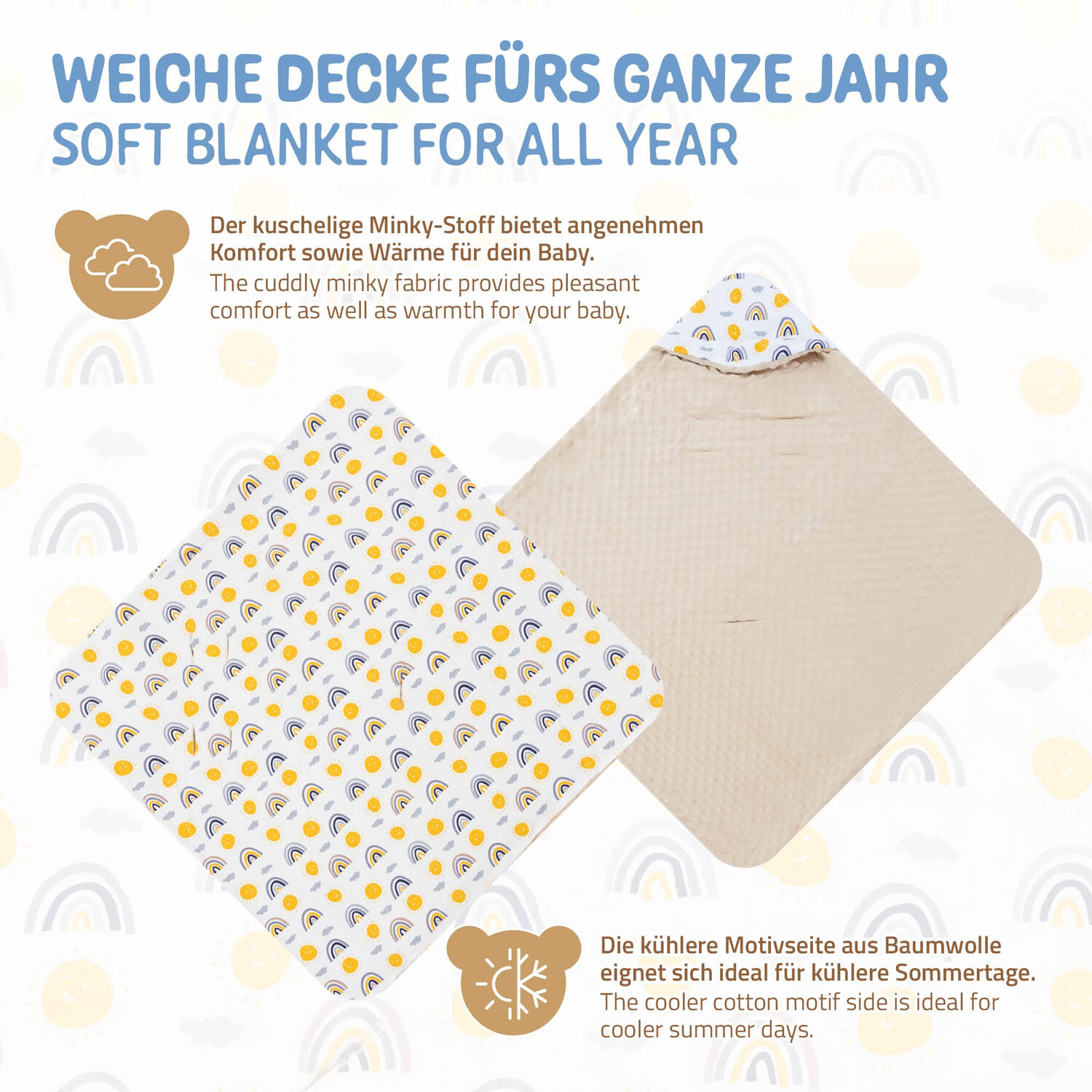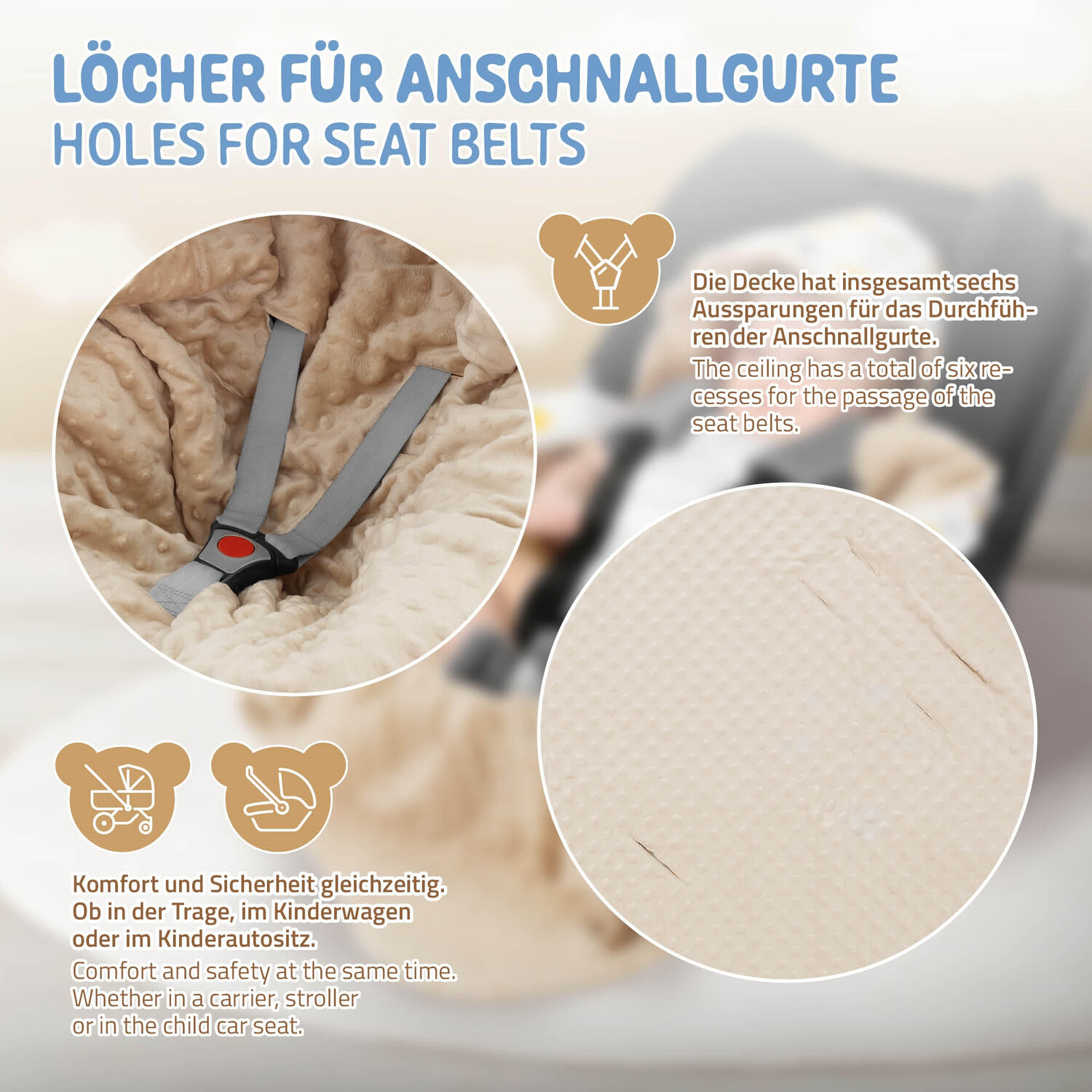 Откройте для себя идеальное пеленание для вашего ребенка – безопасность, комфорт и вшитый капюшон в одном!1. Встроенные прорези для ремней безопасности. Наше одеяло оснащено практичными прорезями, которые идеально подходят к ремням безопасности в автомобиле. Это означает, что вы можете безопасно и легко пристегнуть ребенка, не снимая одеяло. Безопасность вашего ребенка – высший приоритет!2. Вшитый капюшон для дополнительного тепла: Наше пеленальное одеяло имеет уникальный вшитый капюшон, который сохраняет голову вашего ребенка в тепле.3. Универсальное использование: наше пеленальное одеяло незаменимо не только в машине, но и в коляске. Создается уютная обстановка, в которой ваш ребенок чувствует себя комфортно и непринужденно. Идеально подходит для путешествий или когда пришло время вздремнуть!4. Высококачественные материалы: мы знаем, насколько важно, чтобы ваш ребенок чувствовал себя комфортно в одеяле. Наше одеяло изготовлено из первоклассных, приятных и мягких материалов, которые нежны для чувствительной кожи вашего ребенка, но при этом прочны и просты в уходе.5. Стильный дизайн: Наше пеленальное одеяло впечатляет не только своей функциональностью, но и привлекательным дизайном. Он доступен в различных цветах и ​​узорах, чтобы удовлетворить ваш личный стиль.6. Легко чистить: небольшие происшествия неизбежны, но не волнуйтесь: наше пеленальное одеяло легко чистится. Просто постирайте в машине, и он снова готов к использованию. Подарите своему ребенку любовь и безопасность, которых он заслуживает, с нашим пеленальным одеялом. Закажите сегодня и испытайте идеальное сочетание безопасности, комфорта и уютного капюшона!