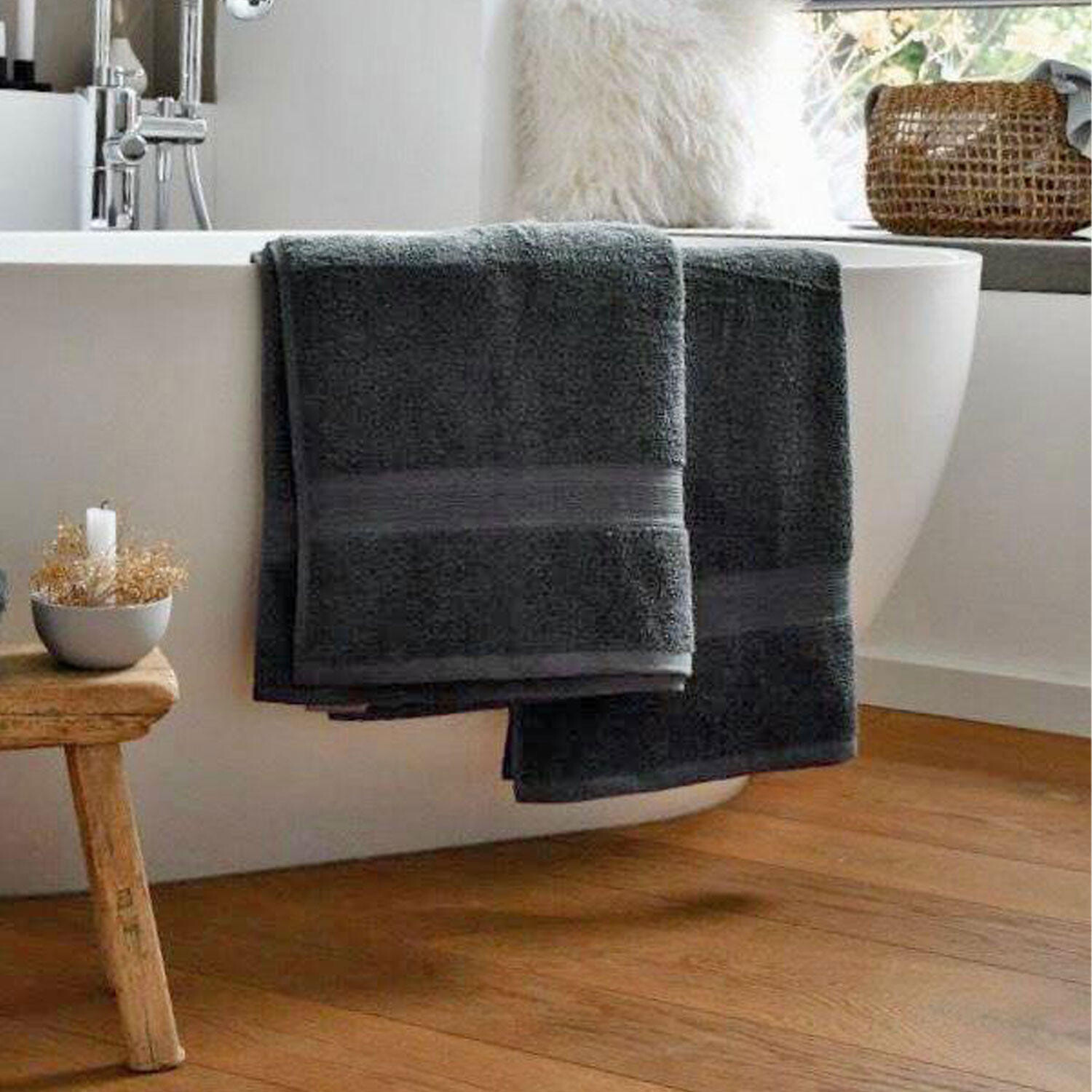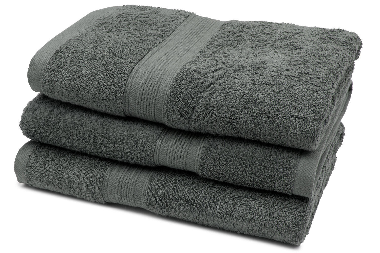 Полотенца для душа современного серого цвета идеально вписываются в любую ванную комнату. Благодаря этому выгодному набору из 3 полотенец для душа у вас всегда будет под рукой достаточно полотенец для смены. Полотенца для душа плотностью 500 г/м² обладают высокой впитывающей способностью и легкостью. в то же время приятно приятен для кожи. В комплект также входит практичная вешалка. Это означает, что вы можете легко повесить полотенца для сушки. Банные полотенца из 100% хлопка можно стирать при температуре до 60°C и сушить в стиральной машине.