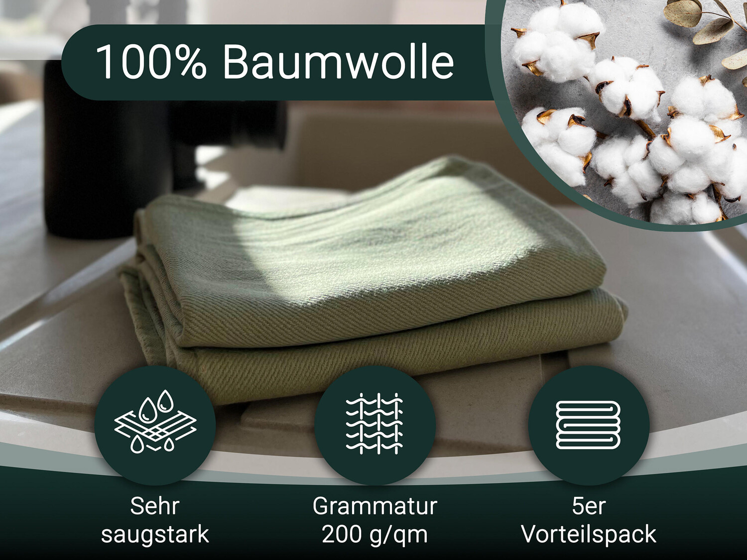 Чайные полотенца набор  Zollner, светло-зеленый