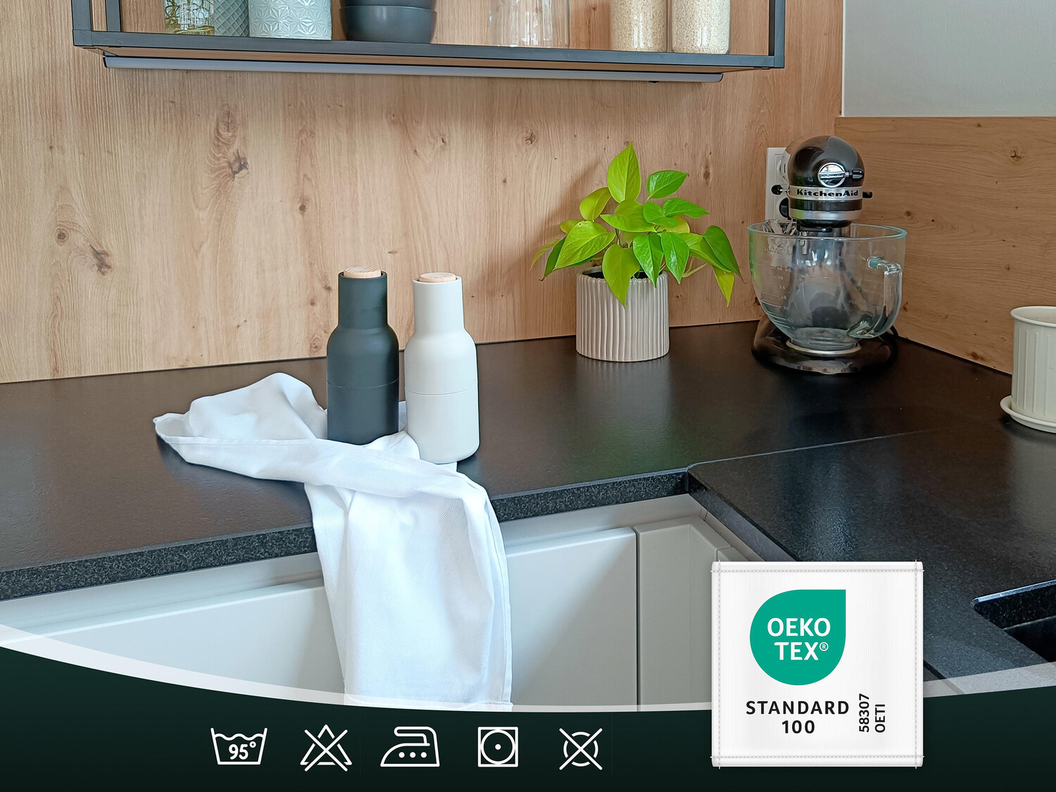Элегантность простоты – эти однотонные сушильные полотенца от гостиничного специалиста по белье впечатляют своим четким дизайном без полос, точек и клетчатых узоров. Кухонные полотенца доступны в различных вневременных цветах. Монохромная цветовая концепция привлечет внимание на вашей кухне, не создавая при этом беспорядка. Идеально подходит как для современной, так и для деревенской кухонной мебели. Великолепные кухонные полотенца в упаковке по 5 штук изготовлены из 100% хлопка и имеют вес 200 г. м². Благодаря натуральному впитывающему материалу полотенца идеально подходят для сушки посуды, кастрюль, стаканов и столовых приборов. Прочные и качественные кухонные полотенца имеют размер 50 х 70 см и имеют практичную вешалку, поэтому они всегда под рукой. На кухне очень важна хорошая гигиена, поэтому простые в уходе хлопчатобумажные кухонные полотенца можно стирать в машине при температуре до 60°C и сушить в стиральной машине.