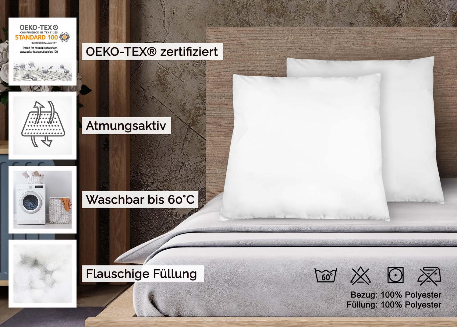 Спите, как на облаках – уютная подушка обеспечит приятные сны после насыщенных событий дней. С практичной упаковкой из 2 штук вы можете менять подушки в спальне и детской комнате и получать совершенно новые впечатления от сна. Прочная подушка для сна размером 80x80 см наполнена шариками из силиконизированного волокна, изготовленными из 100% полиэфирного полого волокна. Наполнитель подушки весом 900 г отличается особой мягкостью и обеспечивает приятную циркуляцию воздуха и влаги. Благодаря наполнителю полиэстеровыми шариками подушке очень хорошо придавать форму и сжиматься. Стабильный по размеру чехол изготовлен из 100% полиэстера. Она также оснащена практичной застежкой-молнией, которая позволяет индивидуально регулировать количество наполнителя. Для обеспечения гигиенической чистоты подушку можно стирать при температуре 60°C и сушить в стиральной машине, что делает ее идеальной для тех, у кого аллергия на домашнюю пыль.