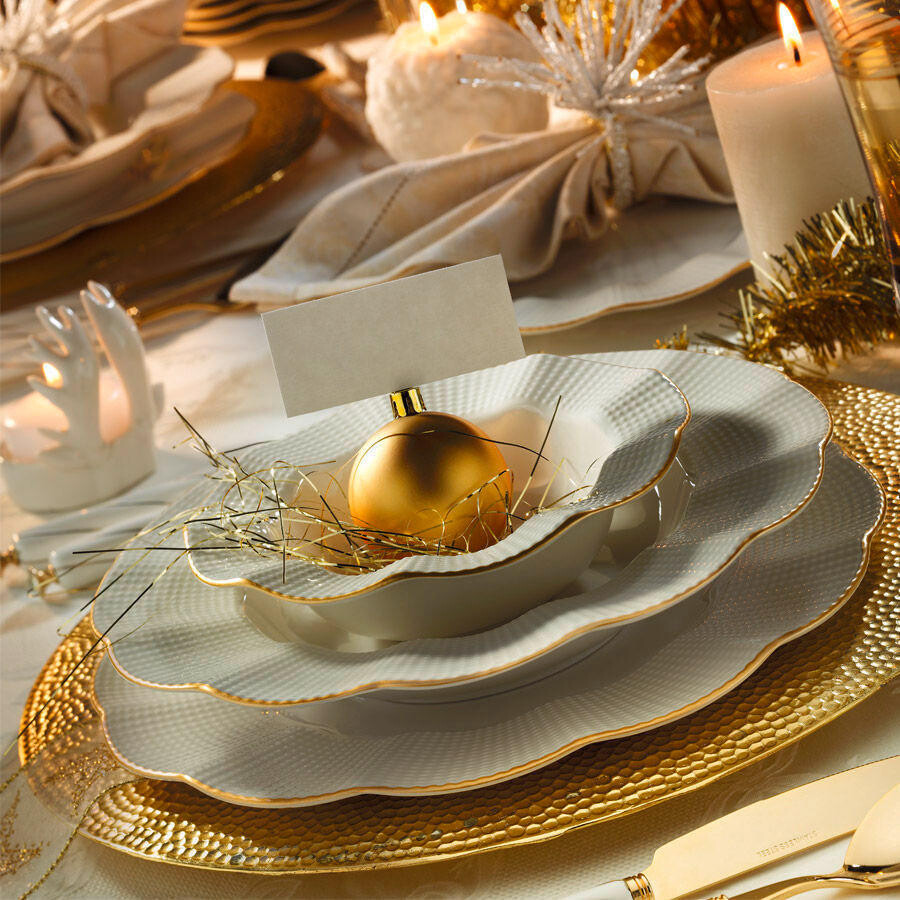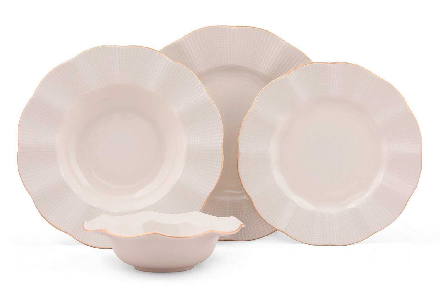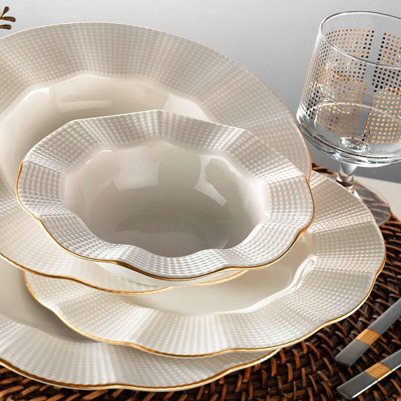 Набор столовой посуды, кремовый/золотой
