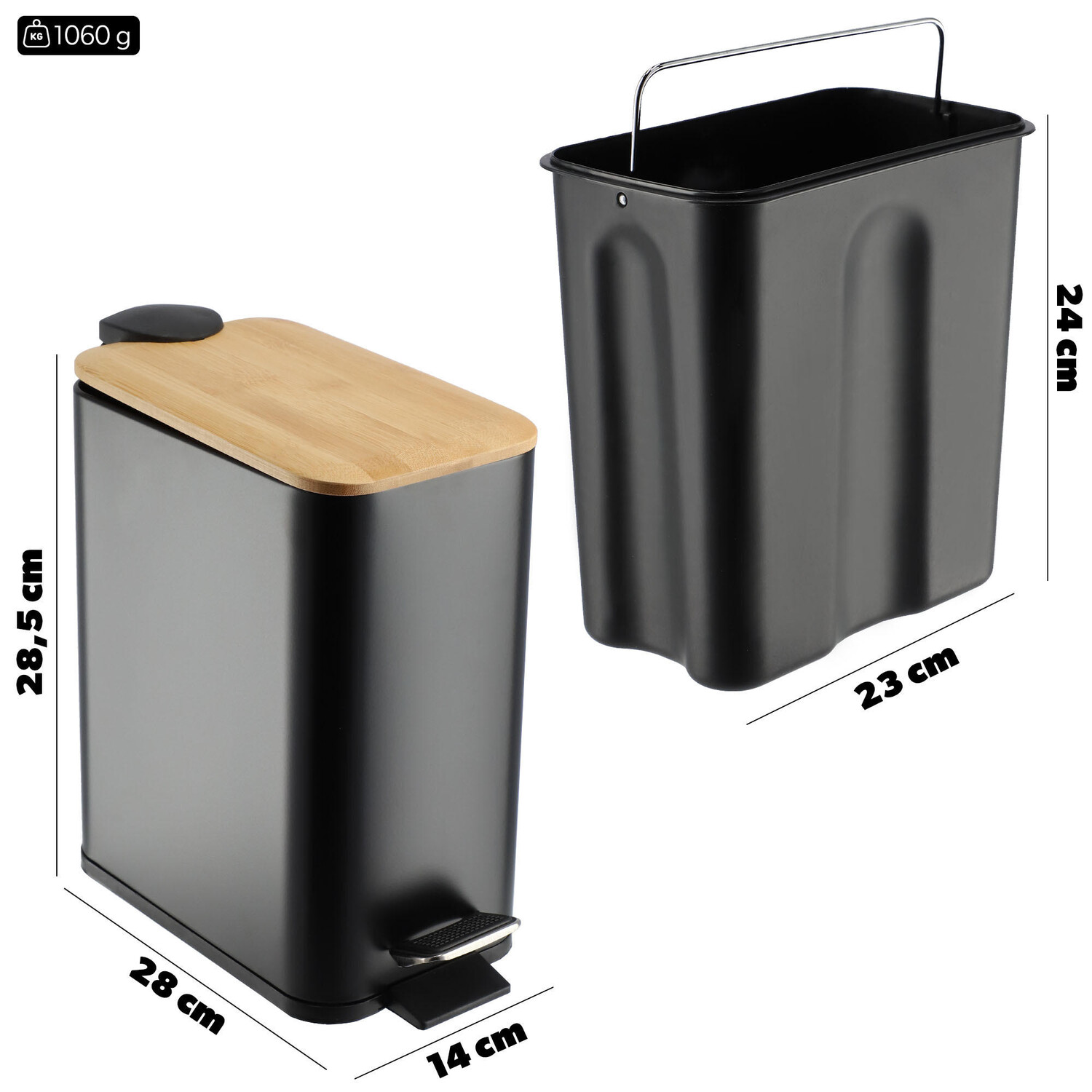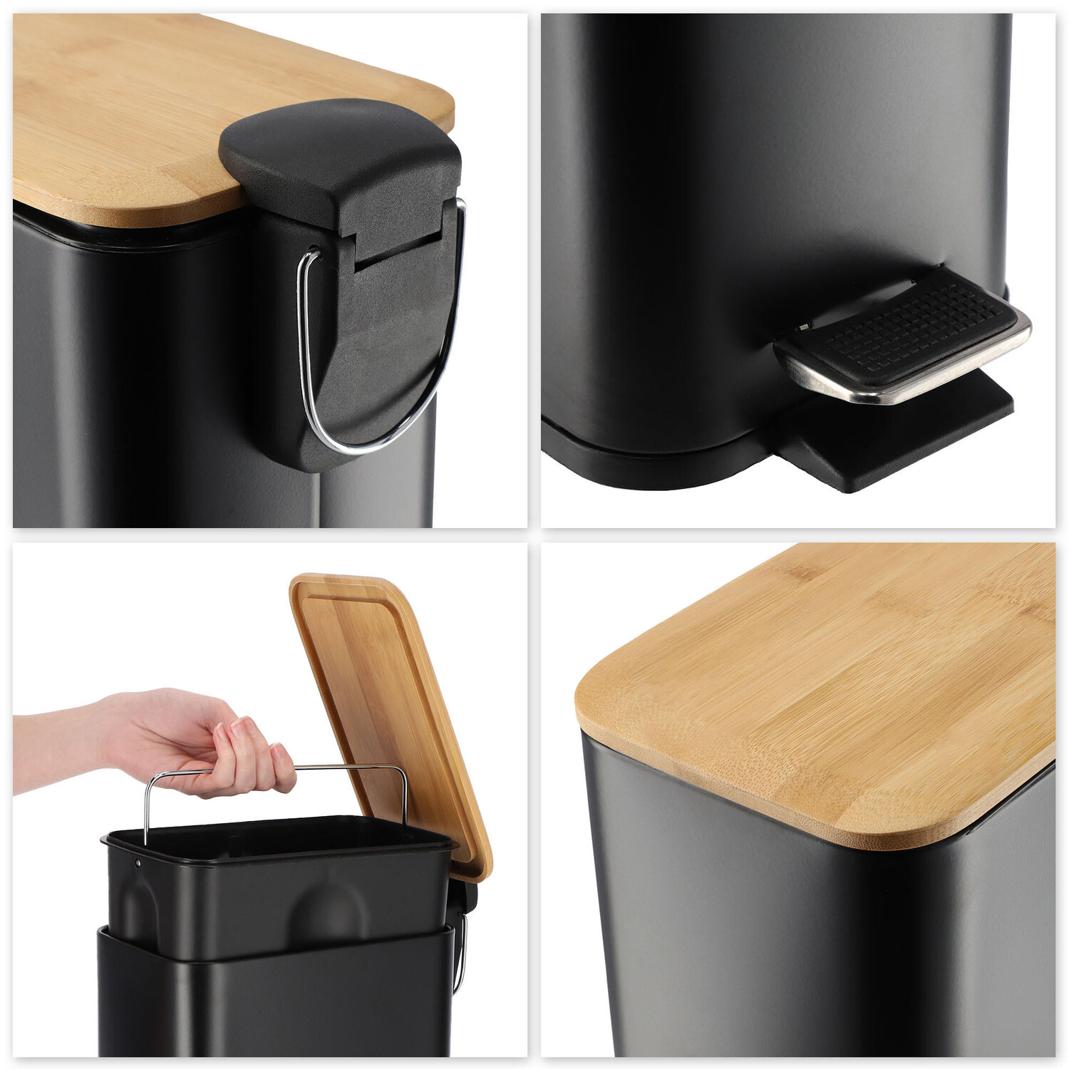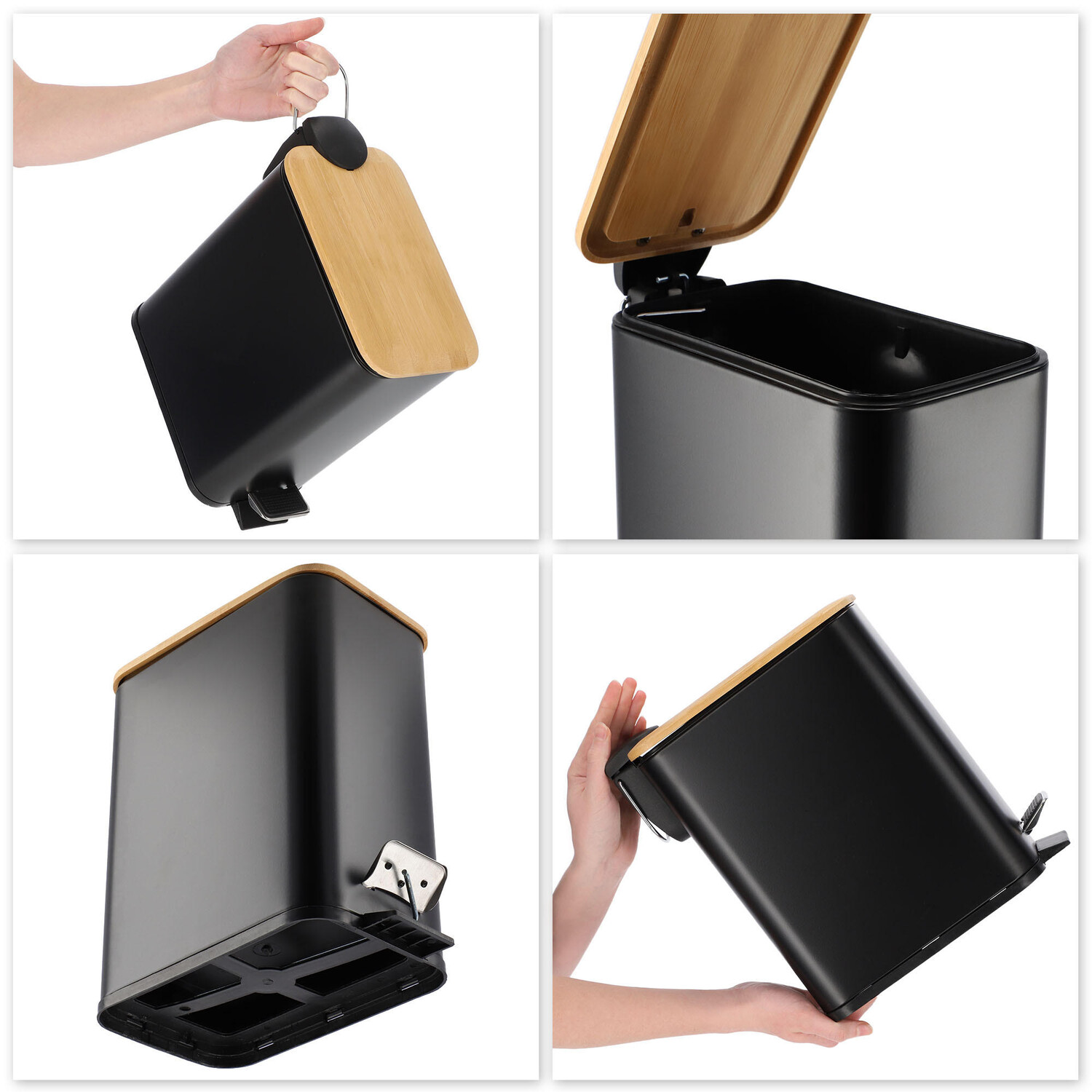 ПРАКТИЧЕСКИЕ И МИЛЫЕ РЕШЕНИЯ ИМЕЮТ ОСОБОЕ ЗНАЧЕНИЕ В ВАШЕЙ КВАРТИРЕ Тогда наш мусорный бак марки KADAX из дизайнерского бамбукового дерева емкостью 3 и 5 литров – именно то, что вам нужно. Ведро-бомбо, которое быстро впишется в условия вашей кухни, прихожей или офиса. Этот контейнер с внутренним ведром также повышает комфорт в ваших комнатах и ​​делает вас чистым, как книжка с картинками! ВАМ ПРОСТО НУЖНО ВЕДРО С ГАРАНТИЕЙ ЗАКАЗА Теперь ваша мечта может стать реальностью: положите остатки еды, бумагу, бутылки с напитками или опустошите их! в нем косметические контейнеры. Независимо от того, используется ли он в ванной, кухне, прихожей или офисе, этот мусорный бак найдет свое тихое место. Функциональный мусорный бак обещает порядок и блеск в интерьере. В 3 литра вмещается много мусора — почему нужно выносить мусор каждые 5 минутНОВЫЙ ВАУ-ЭФФЕКТ ДЛЯ ДОМА Наше ведро с бамбуковой крышкой придаст вашей кухне нотку чистого очарования. Красиво переливающееся дерево станет отличным дополнением к квартире с современным дизайном. Вы убиваете двух зайцев: с одной стороны получаете практичное ведро, с другой — дизайнерское украшение бесплатно доставляется к вашей двери. Окраска особенно эффективна при нанесении на кухонную или ванную утварь: мгновенный эффект гарантирован. НАШ КОНТЕЙНЕР ДЛЯ ОТХОДОВ ОБЕСПЕЧИТ ВАМ ЛЕТ СЛУЖБЫ! Твердая бамбуковая древесина устойчива к ударам, а пластиковая подставка гарантирует, что на полу не останется царапин. Это значит: вам не придется беспокоиться о каких-либо признаках износа кафельного пола в ванной комнате! Сталь с порошковым покрытием защищает стенки ведра от неприглядных вмятин, и контейнер долгое время остается в неповрежденном состоянии.