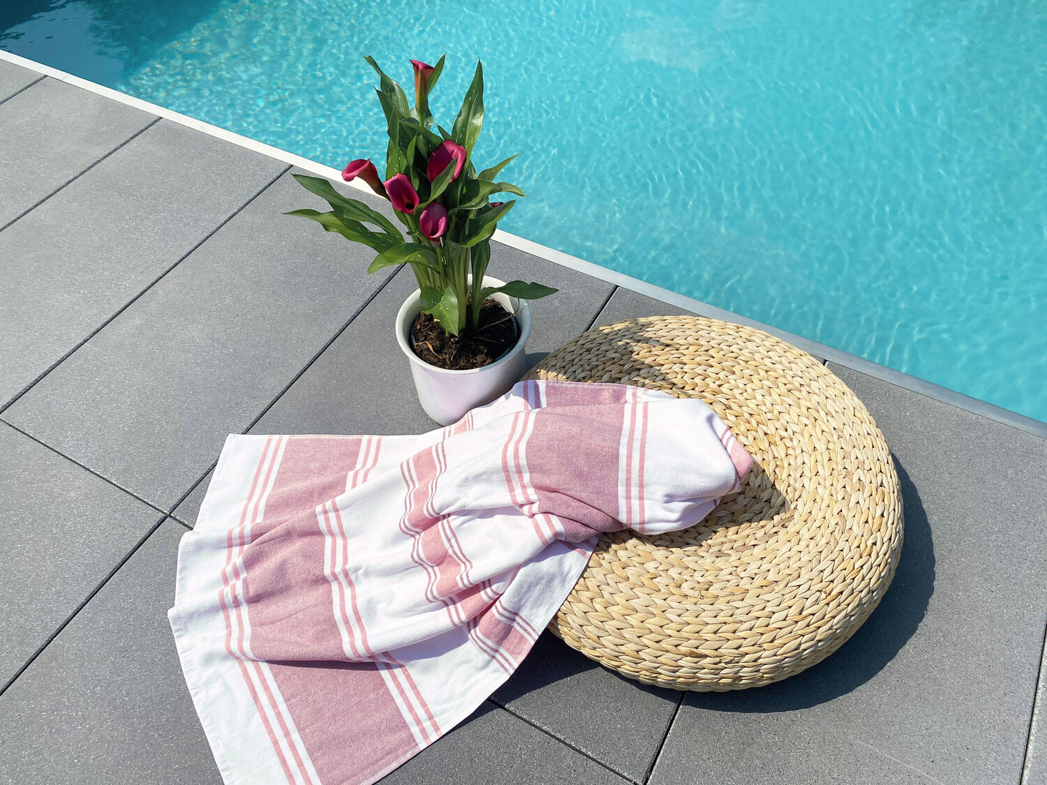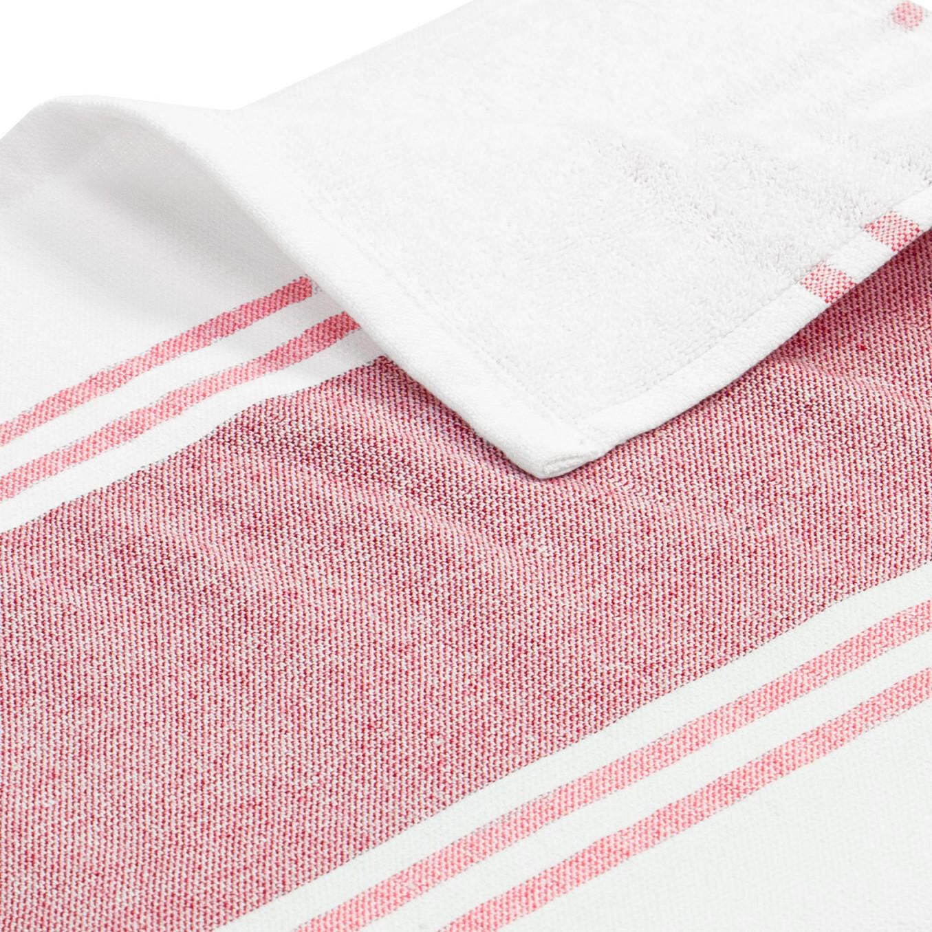 Это пляжное полотенце – настоящий универсал! Благодаря функциональному сочетанию тканей сочетает в себе преимущества полотенца для хаммама и махрового полотенца. Одна сторона гладкая, как полотенце для хаммама, другая из мягкой махровой ткани. Поэтому оно впитывает влагу лучше, чем классические полотенца для хаммама. Универсальное банное полотенце размером 70x180 см идеально подходит в качестве поверхности на пляже, в бассейне или в качестве подушки для шезлонга в саду дома. Безопасное для кожи банное полотенце изготовлено из 90 % хлопка и 10 % полиэстера. Сочетание белого и нежного старого розового придает ему свежий и летний вид. Благодаря плотности материала 360 г/м2 простыня очень впитывает влагу, но при этом быстро сохнет и легка. Легкое в уходе пляжное полотенце можно постирать при температуре 60°C, а затем положить в сушилку при низкой температуре.
