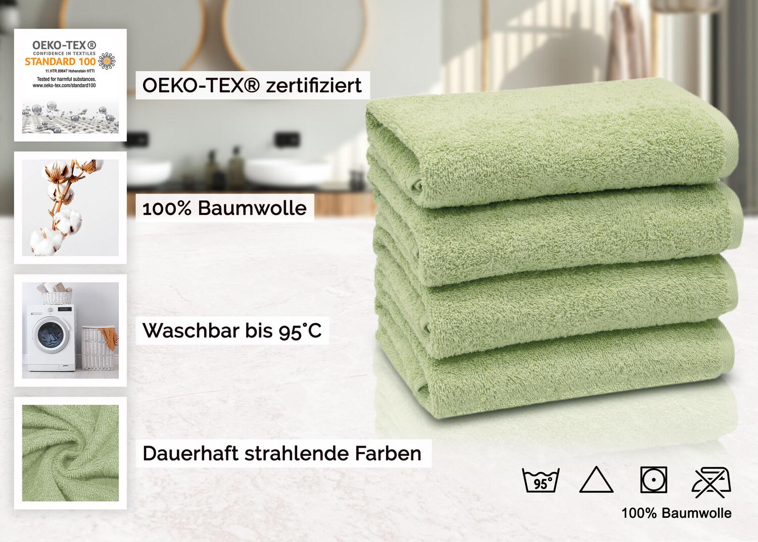 Будь то махровое полотенце для волос, полотенце для сауны или полотенце для душа – полотенце просто необходимо. Благодаря большому выбору цветов, казалось бы, незаметная ткань становится приковывающей взгляд. Особый плюс – окраска индантреном, обеспечивающая высокую стабильность цвета. Даже после многократной стирки полотенце для душа продолжает сиять вашим любимым светло-зеленым цветом. Для обеспечения гигиенической чистоты полотенца можно стирать при температуре 95°C и сушить в стиральной машине. Они изготовлены из 100% хлопка, переработанного в махровую ткань. Это делает их особенно пушистыми и впитывающими. Кроме того, махровые полотенца оснащены двойным предохранительным швом. Полотенца с вешалкой продаются в практичной упаковке по 4 штуки, поэтому вся семья будет хорошо оборудована. Их размер 50 х 100 см, плотность материала около 420 г/кв.м.