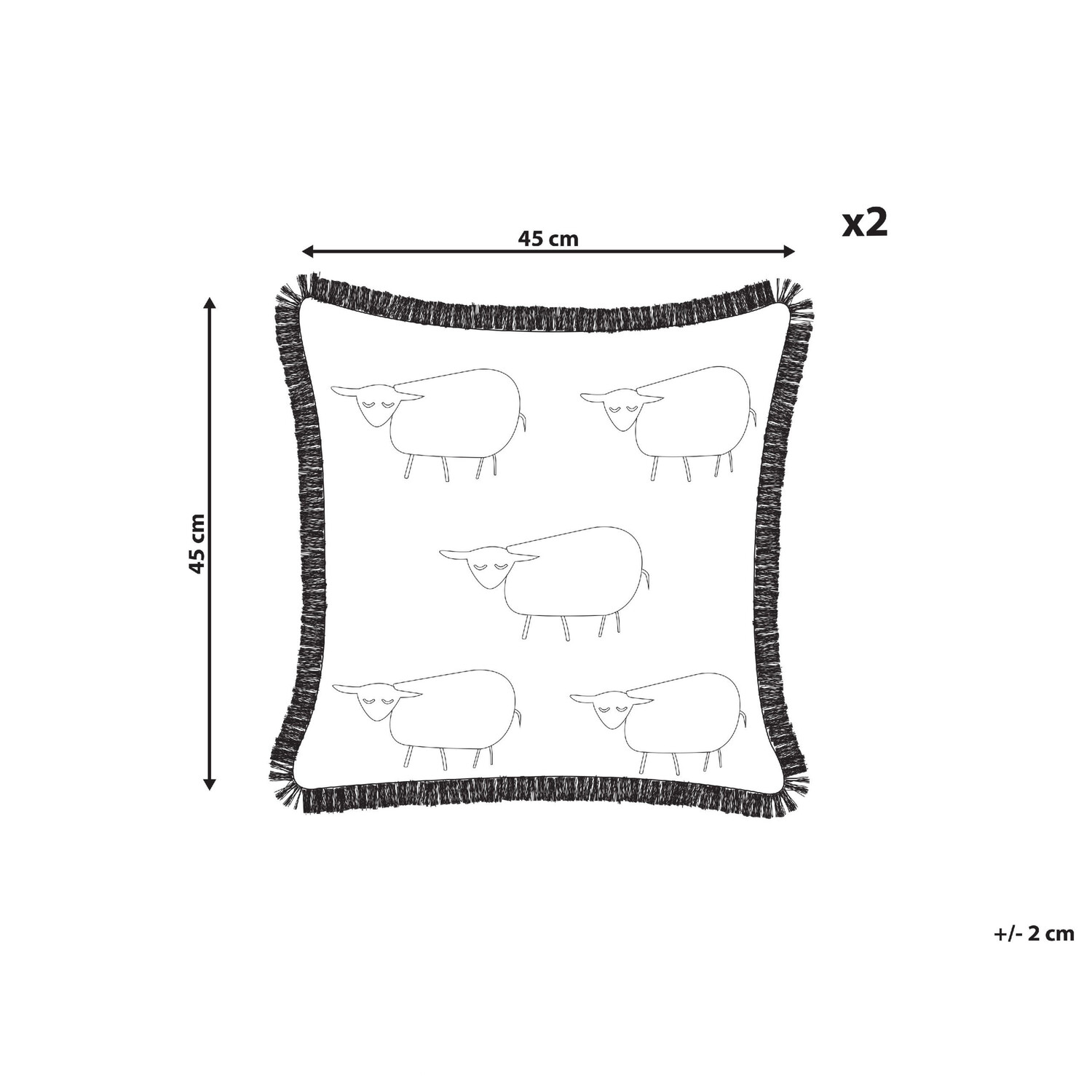 Две квадратные декоративные подушки из высококачественного хлопка с вышитыми узорами. Эти диванные подушки впечатляют не только высококачественными тканями, но и качеством изготовления и красивым мотивом овец. Обе наволочки изготовлены из натурального хлопка и имеют плотный наполнитель из полиэстера. Этот превосходный выбор материала гарантирует, что подушки будут приятно мягкими. Благодаря встроенным потайным молниям уход за комплектом очень прост. Помимо игривой вышивки овец, чехлы имеют декоративную бахрому по бокам, которая подчеркнет очарование вашего интерьера.Детали: Тип: Декоративная подушка Стиль: Современный Цвет: Бежевый, Черный Тип материала: Ткань Материал: Хлопок Дополнительный материал: Полиэстер Наполнитель: Полиэстер Состав: 80% Хлопок Форма: Квадратная Ручная работа: Без рисунка: Животный принт Размеры: Глубина: 45 см Ширина: 45 см Высота: 10 см Вес наполнителя: 400 кг Вес: 0,8 кг Вы покупаете: 2 декоративных подушки Преимущества товара: Съемный чехол, Отличное дополнение к детской комнате, Уникальное украшение, Высококачественный материал, Сертифицированное качество по стандарту Oeko-Tex Standard 100. Дополнительная информация: Подушка упакована в вакуум. Достаньте подушку из упаковки и оставьте на 24 часа, пока она не достигнет полной плотности. Инструкции по уходу: Хлопок: 1. Пятна можно удалить с помощью средства для чистки обивки, влажной губки или мягких чистящих средств. 2. Тщательно пылесосьте поверхности с помощью подходящей насадки.