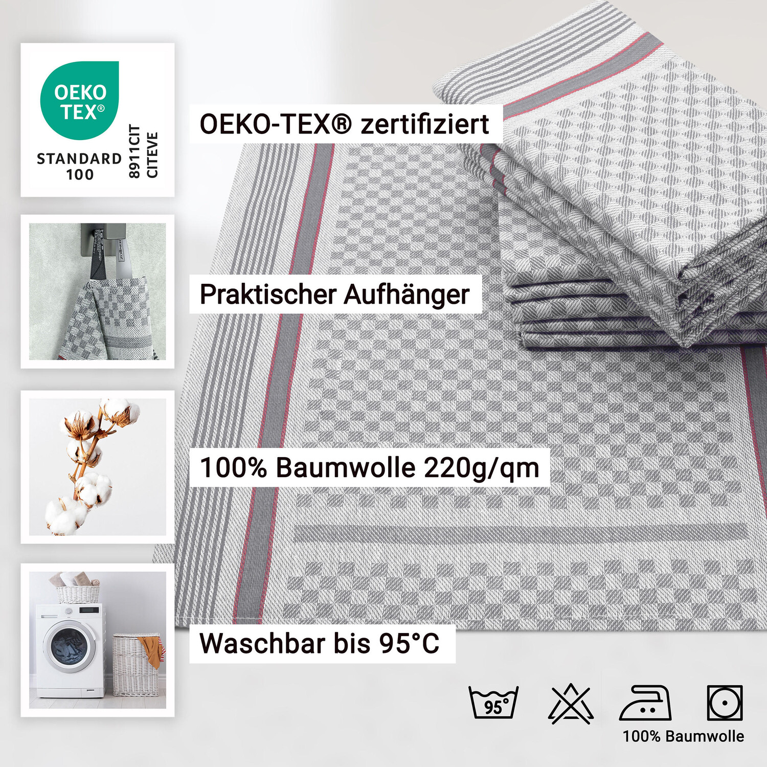 Полотенце для ямы – абсолютный универсал среди полотенец. Будь то кухонное полотенце, ручка, кухонный фартук или обычное полотенце для рук — возможности использования безграничны. Кухонное полотенце с вешалкой изготовлено из 100% хлопка и изготовлено из пряжи полного кручения. Использование пряжи полного кручения позволяет получить особенно прочную и износостойкую пряжу, идеально подходящую для повседневного использования на кухне. Впитывающая универсальная ткань имеет размер 50 x 100 см и плотность материала около 220 г/м². . Он имеет кубический узор и доступен в различных цветах. Чтобы всегда иметь в наличии достаточное количество хлопчатобумажных полотенец, пит-полотенца продаются в выгодной упаковке по 10 штук. Для обеспечения абсолютной гигиены кухонное полотенце можно стирать в машине при температуре 95°C и сушить в стиральной машине.