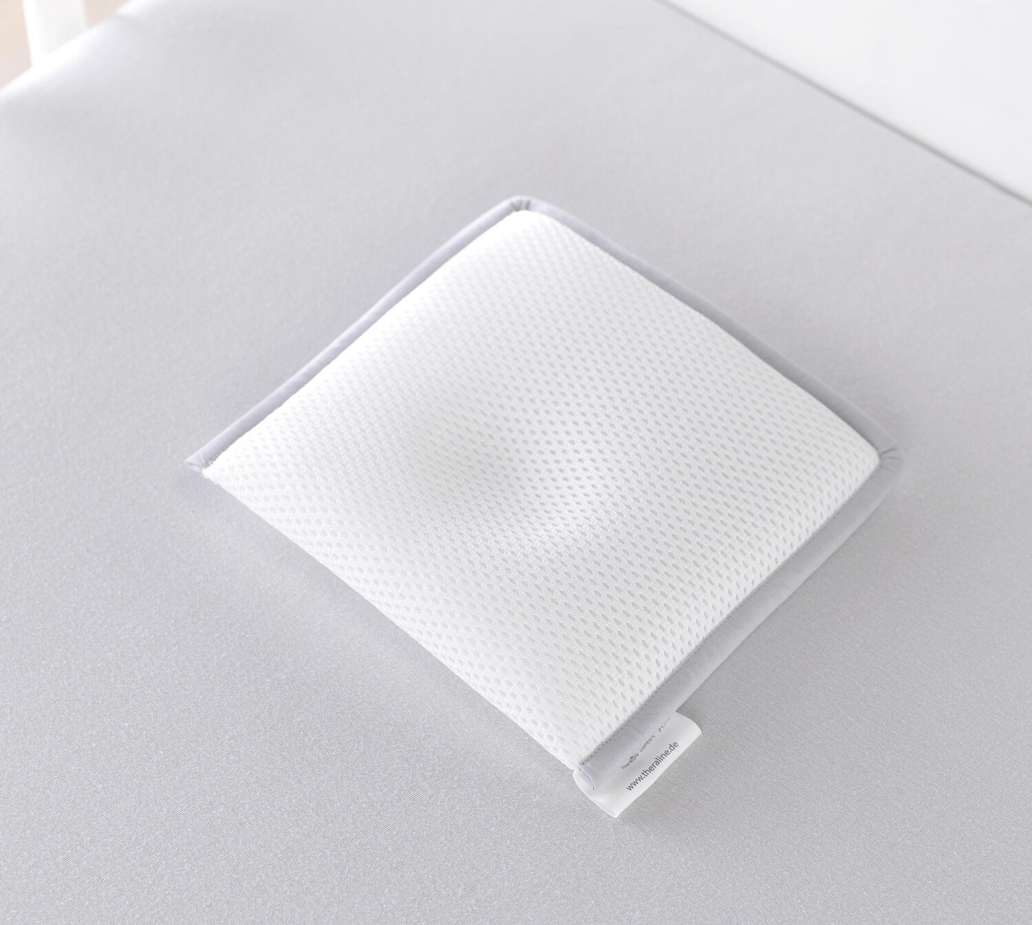 Эта моющаяся детская подушка белого цвета (Ш х Д: примерно 21 х 20 см) от THERALINE гарантирует максимальный комфорт вашему малышу. Эргономичная форма поддерживает шею и в то же время предотвращает деформации затылка. Воздухопроницаемая смесь хлопка и полиэстера обеспечивает оптимальный контроль температуры текстиля. Ваш малыш будет удобно и безопасно лежать на этой высококачественной детской подушке (можно стирать) белого цвета!