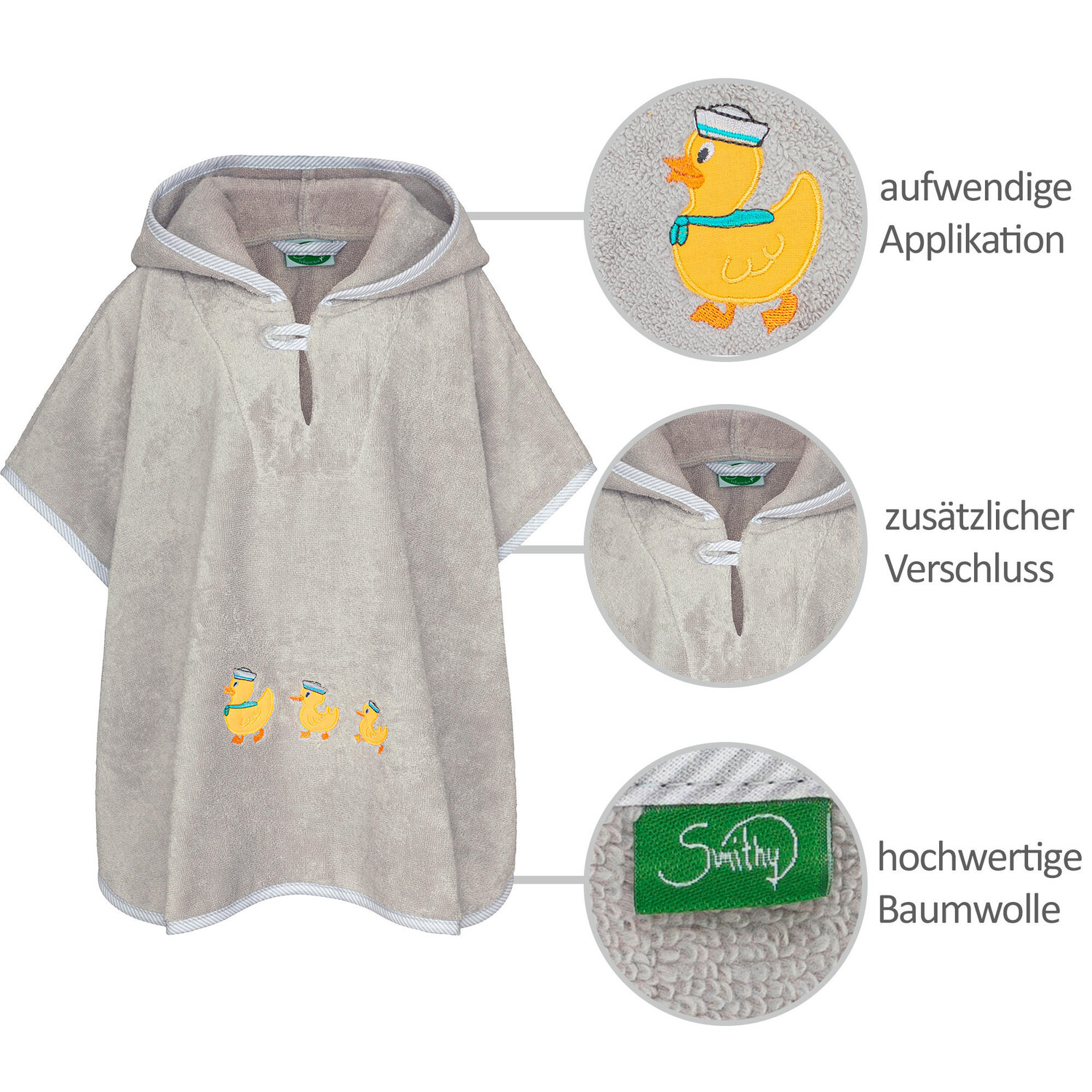 Банное полотенце с капюшоном утка, светло-серый