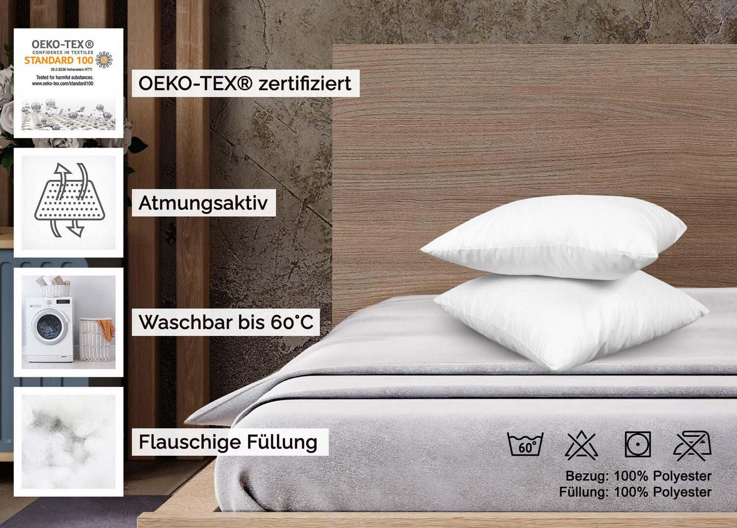 Спите, как на облаках – уютная подушка обеспечит приятные сны после насыщенных событий дней. С помощью практичной упаковки из 2 штук вы можете менять подушки в спальне и детской комнате и получать совершенно новые впечатления от сна. Прочная подушка для сна размером 40x60 см наполнена шариками из силиконизированного волокна, изготовленными из 100% полиэфирного полого волокна. Наполнитель подушки весом 340 г отличается особой мягкостью и обеспечивает приятную циркуляцию воздуха и влаги. Благодаря наполнителю полиэстеровыми шариками подушке очень хорошо придавать форму и сжиматься. Стабильный по размеру чехол изготовлен из 100% полиэстера. Для обеспечения гигиенической чистоты подушку можно стирать при температуре 60°C и сушить в стиральной машине, что делает ее идеальной для тех, у кого аллергия на домашнюю пыль.