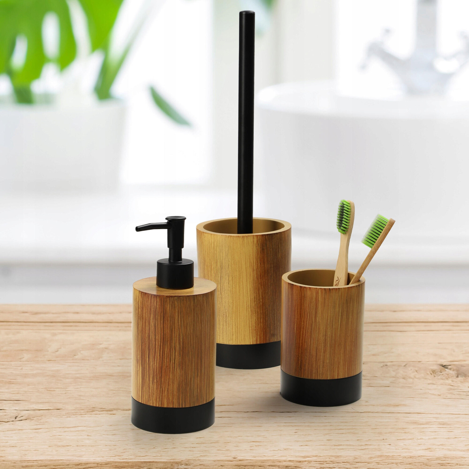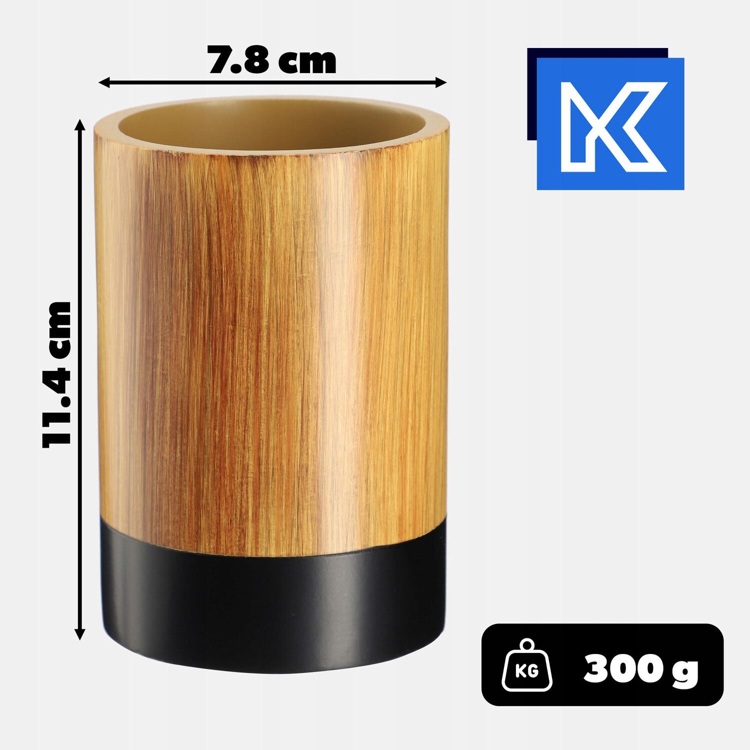 Хотите больше очарования в своем доме? Вы пришли в нужное место! Познакомьтесь с нашей дизайнерской чашкой для зубной щетки Laon с деревянным узором. Он хорошо адаптируется к последним тенденциям. Сочетание темного дерева и черного цвета придает кружке стильный и мужественный характер. Он особенно подходит для современной и лофтовой мебели, основанной на простых формах. Поставьте его в свою ванную комнату, и все гости будут в восторге. Посуду для ванной должно легко мыть. Мы тоже об этом подумали! Чашка для зубной щетки Laon имеет круглую форму, без углов и лишних украшений, что значительно облегчает ее чистку. Достаточно время от времени протирать его влажной тряпкой с моющим средством. Это значит, что он долгое время не потеряет своих эстетических и функциональных свойств. Это предотвращает развитие болезнетворных бактерий на зубных щетках. Оптимальный размер изделия также способствует повышению гигиеничности. Слишком большие чашки быстро содержат слишком много бактерий, что может оказать негативное влияние на ваше здоровье. Наша кружка для ванной имеет диаметр 7,5 см и высоту 11 см. Также он устойчив к воздействию вредных факторов. Его поверхность прочная и устойчивая к царапинам и повреждениям. Вы сможете долгое время наслаждаться его эстетичным видом.