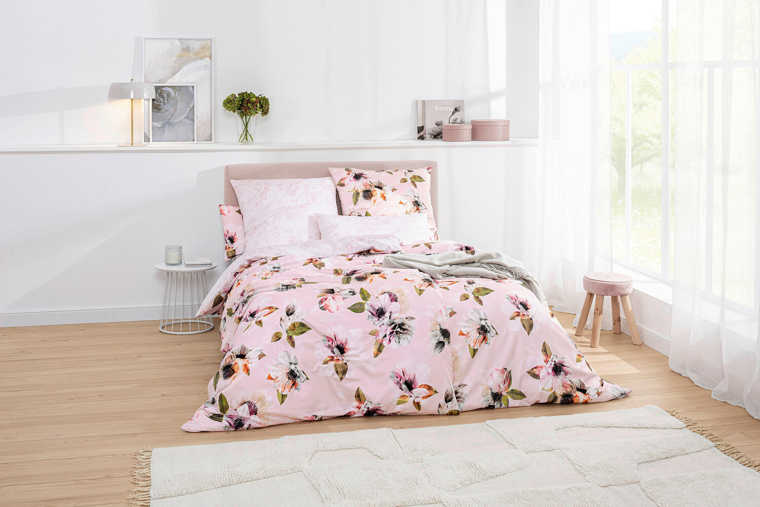 С двусторонним постельным бельем ESTELLA «Розовый» вы сможете добавить стилистическую вишенку на торт в свой уголок отдыха. На розовом фоне нежными оттенками цветут разнообразные дикие розы. На другой стороне появляется тонкий абстрактный узор. Особенно практично: в комплект входят 2 наволочки (Ш x Д: примерно 40 x 80 см и примерно 80 x 80 см) - это создает гармоничную общую картину, включая декоративные подушки. Хлопок производит впечатление дышащего и приятного для кожи натурального волокна. , внешний вид которого дополняет атласная поверхность с нежным мерцанием. За ним очень легко ухаживать, его можно стирать в машине при температуре до 60°C. Предварительно вы можете быстро сменить трио с помощью молнии. Двустороннее постельное белье ESTELLA «Розовый» приглашает вас прижаться к себе!
