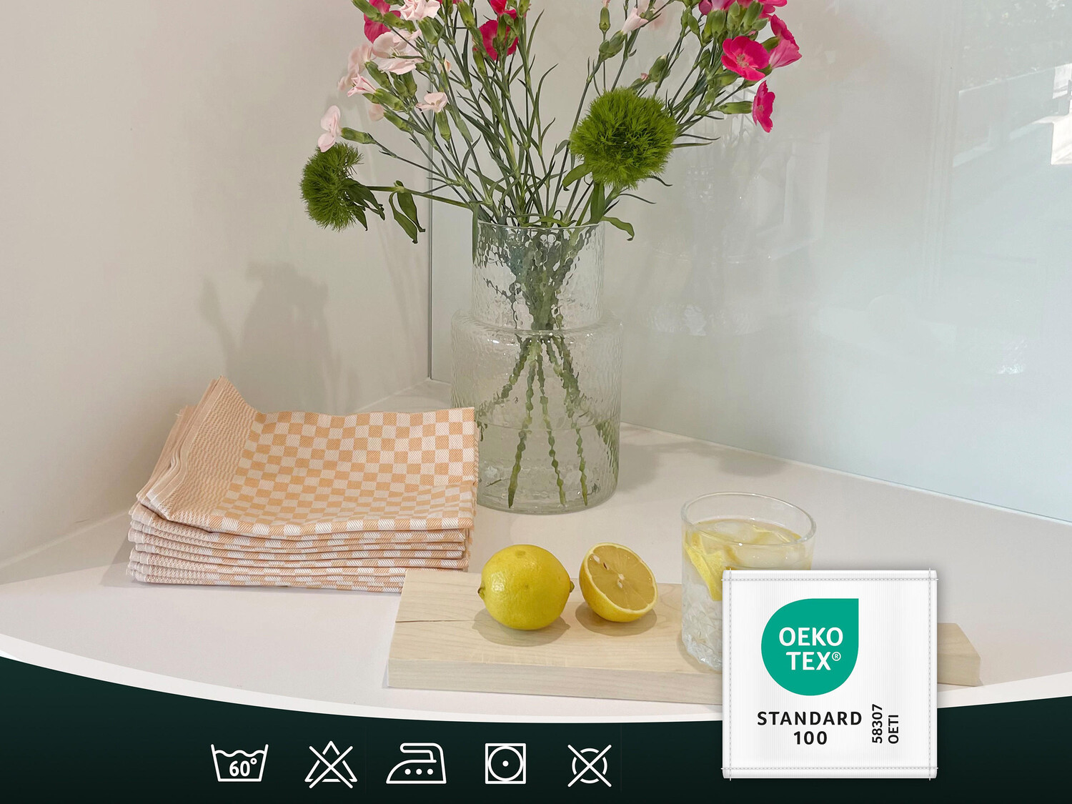 Классические, но современные — эти красивые кухонные полотенца с клетчатым рисунком поставляются в практичной упаковке по 10 штук. Чтобы вы могли подобрать цвет, подходящий для вашей кухни, полотенца для сушки доступны в различных цветах. Они имеют размер 46x70 см и оснащены вешалкой. Качественные кухонные полотенца изготовлены из 100% хлопка и имеют плотность материала 220 г/м². Скрученные нити натурального материала обеспечивают высокую впитываемость и делают кухонные полотенца очень прочными. Для обеспечения гигиенической чистоты кухонные полотенца можно стирать в стиральной машине при температуре до 60°С и сушить в стиральной машине. Даже после частой стирки хлопковые кухонные полотенца не теряют прочности материала и остаются надежным помощником на кухне.