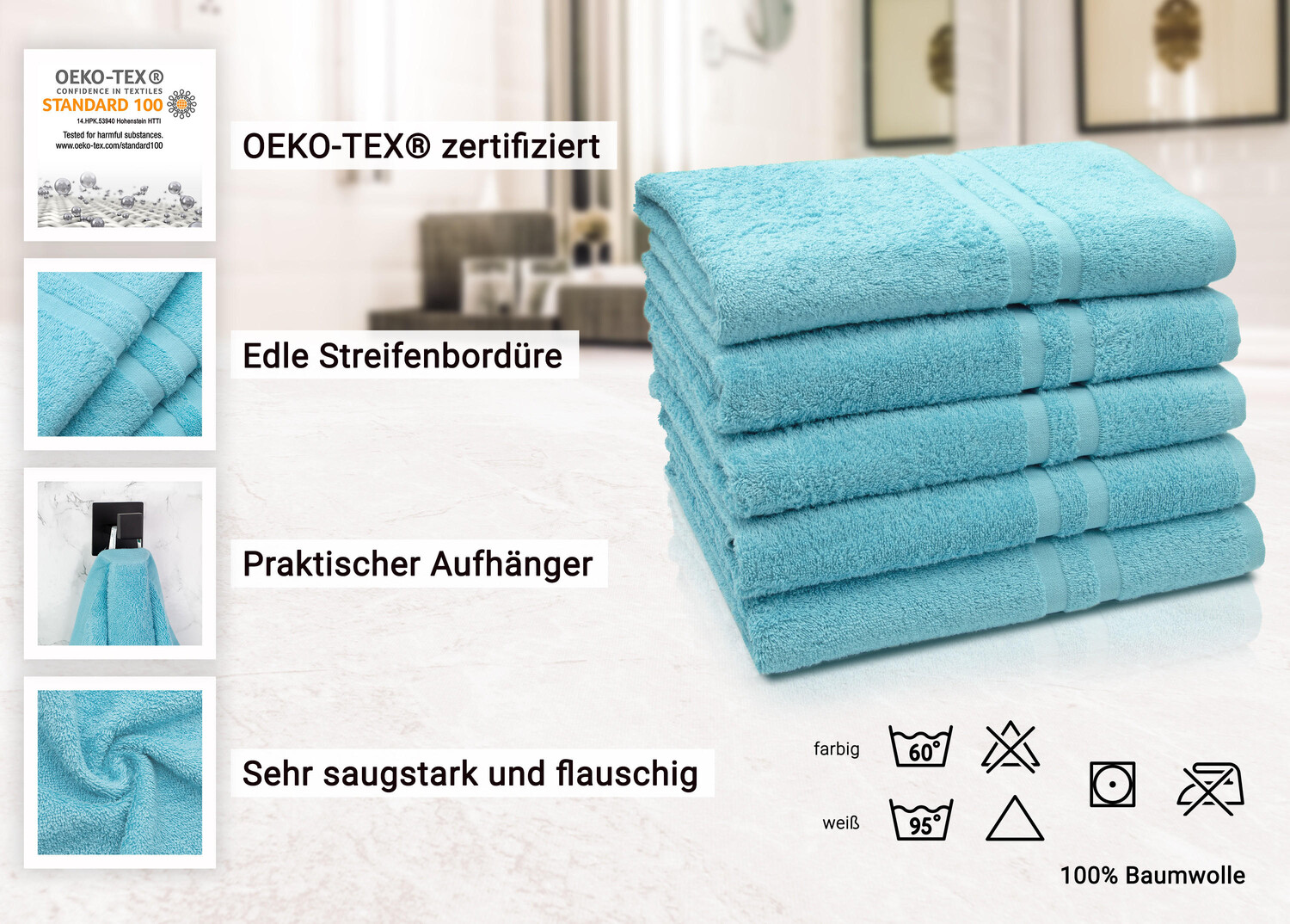 Если вы предпочитаете принимать душ утром, вечером или после тренировки, полотенце просто необходимо. Благодаря выгодному пакету банные полотенца у вас никогда не закончатся. Банное полотенце изготовлено из 100% хлопка и имеет плотность материала около 450 г/кв.м. Натуральный материал вплетен в впитывающую и очень мягкую махровую ткань - идеально подходящую для вашего следующего посещения крытого бассейна, спортивной студии или просто для вашей собственной ванной комнаты. Полотенца для душа размером 70x140 см доступны во многих красивых цветах и ​​со стильным дизайном. полосатая граница. Белые изделия устойчивы к кипячению, а цветные можно стирать при температуре до 60°C. Кроме того, большие синие банные полотенца можно сушить в сушильной машине.