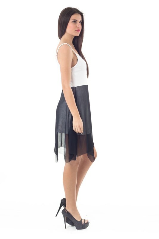 Юбка с контрастным прозрачным слоем придает этому эффектному платью неземную нотку. Лиф из эластичной ткани обеспечивает четкий крой, а неровный подол создает привлекательный силуэт. Регулируемые бретели-спагетти для идеальной посадки. Небольшой V-образный вырез. На изображенной модели рост 176 см, размер S/36.