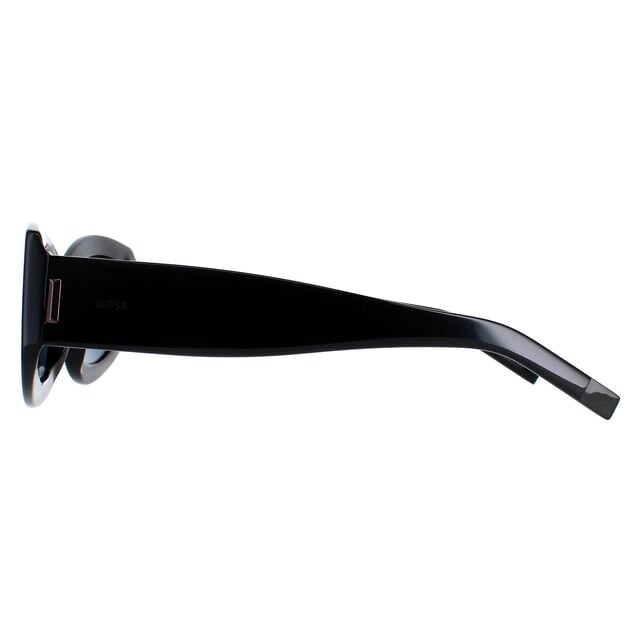 Солнцезащитные очки Hugo Boss BOSS 1455/S 807 IR черного темно-серого цвета имеют смелую оправу с широкими дужками и общую оправу, создающую настоящий ретро-образ. Небольшая пластинка с логотипом Hugo Boss завершает образ.