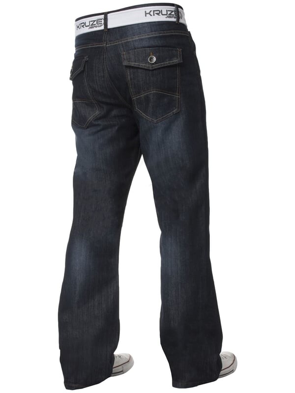 Мужские джинсы Kruze из денима с контрастной строчкой и застежкой-молнией. Модель с пятью карманами, задними карманами с клапанами на пуговицах, фирменными пуговицами и заклепками. Идеально подходит для повседневной и рабочей одежды.