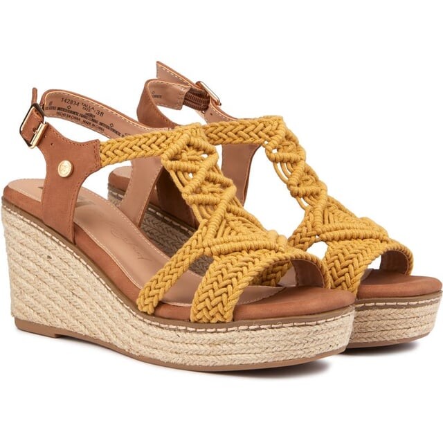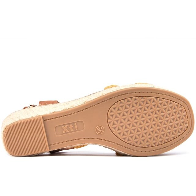 Женские туфли на танкетке Xti - коричневые, из ткани.