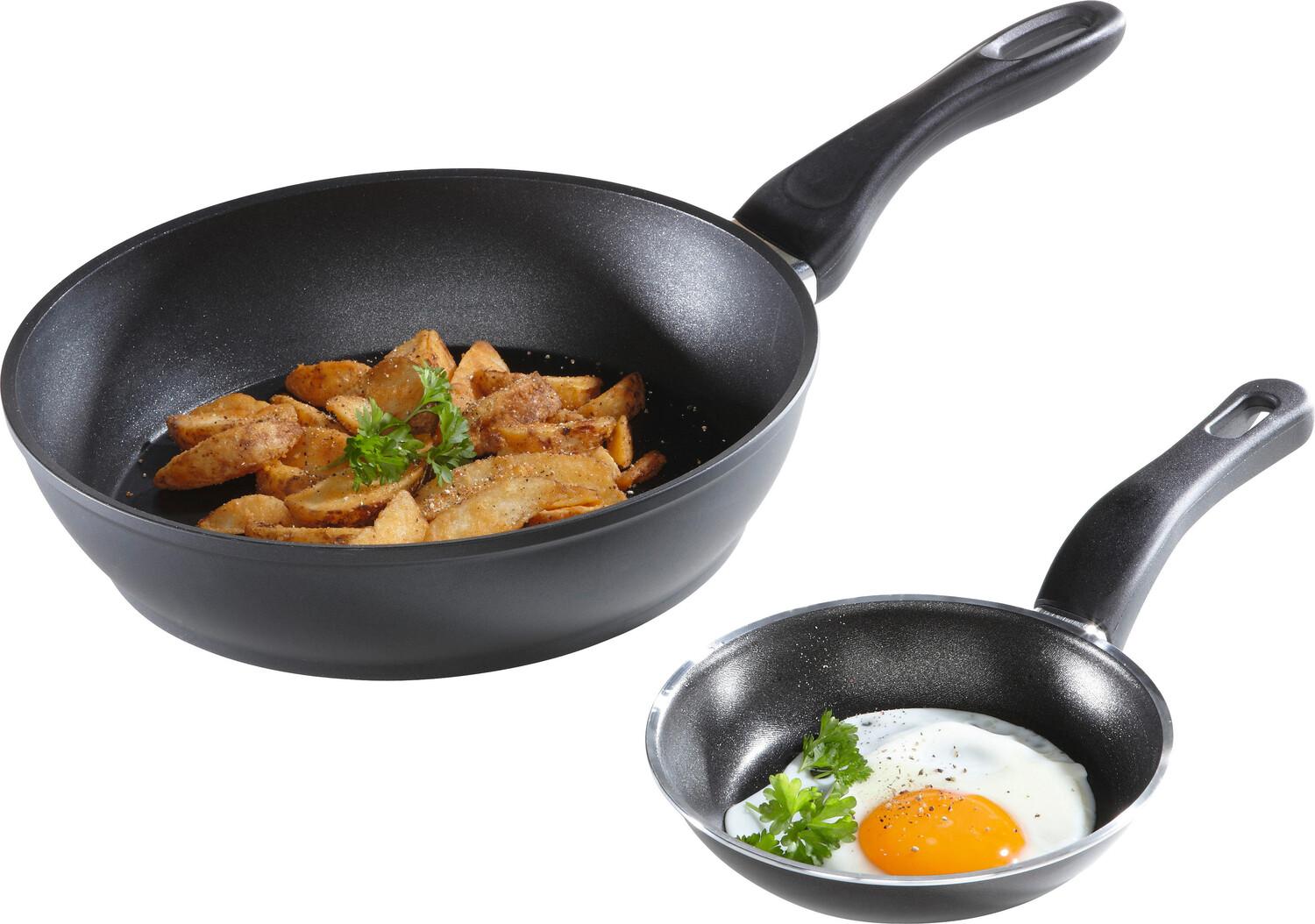 Набор из двух сковородок от BALLARINI состоит из формы Vesuvio (Д: 28 см) и формы для яиц (Д: 16 см). Обе сковороды изготовлены из высококачественного алюминия и подходят для духовки. Благодаря антипригарному покрытию из ПТФЭ вы сможете быстро приготовить яичницу и вкусные шницели. Эти сковороды превращают приготовление пищи в удовольствие!