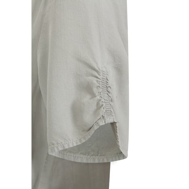 Материал: 100% Тенсел. Ткань: Тенсел. Технология ткани: дышащая, легкая. Дизайн: Обычный. Эластичный пояс, застежка на кнопки, запах. Вырез: V-образный. Тип рукава: Короткий рукав Манжета: Частично эластичная.