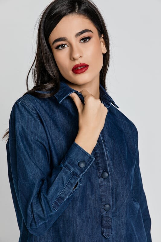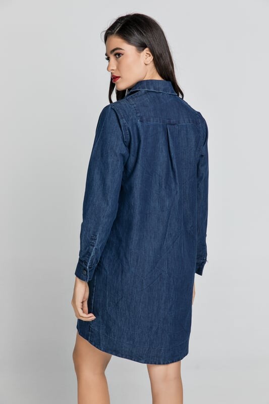 Джинсовое платье-рубашка. Длинные рукава с манжетами, которые застегиваются на пуговицу. Воротник рубашки с длинной планкой на четырех пуговицах спереди. Два боковых кармана. Мешкообразный силуэт. Длина: чуть выше колена. Рост нашей модели 176 см, размер 36/S. Мерки для размера 36/S (в см): Плечо-42, Грудь-50, Талия-50, Ягодицы-52, Длина рукава-58, Длина тела-87. 92%Хлопок-8%Эластан. Аксессуары не включены.