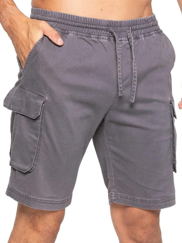 Мужские эластичные шорты-карго Enzo. Эластичный пояс с регулируемым шнурком. Дизайн с 5 карманами. 2 боковых кармана, 2 набедренных кармана на застежке-липучке. Сзади один прорезной карман. Шорты стандартного кроя со средней посадкой