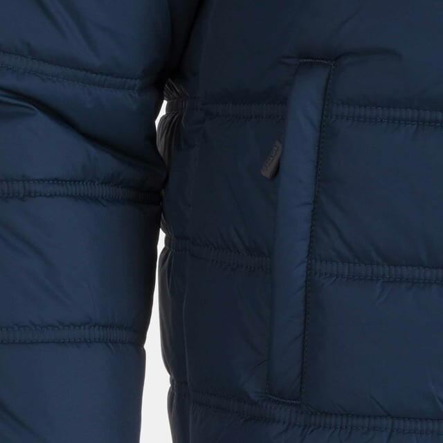 Характеристики: Утепленная спортивная куртка-бомбер из синтетической ткани с эластичным трикотажным поясом и манжетами, съемным капюшоном и регулируемым воротником на шнурке. Одежда также имеет вышитый логотип на груди, боковые карманы и внутренний карман на молнии. Подходит: Нормальный