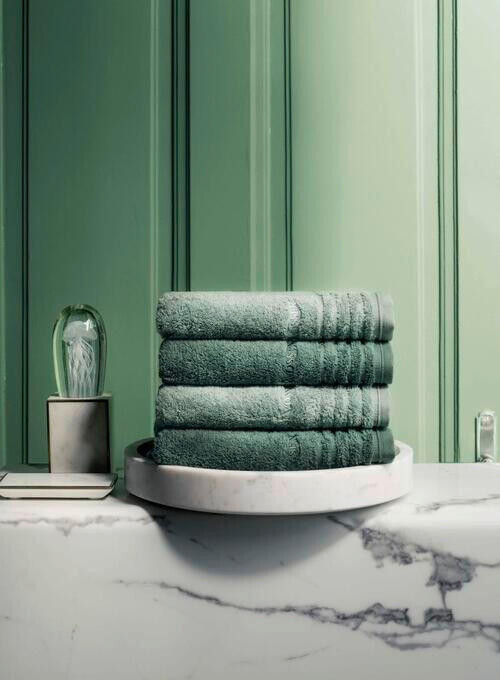 Доверьтесь качеству: это полотенце VOSSEN зеленого цвета особенно пушистое и впитывающее. Хлопковые волокна с махровой поверхностью гарантируют бережное высыхание. Образ в цвете Evergreen с узкой каймой передает дружелюбную харизму. Зеленое полотенце VOSSEN с вышитым логотипом и петлей для подвешивания создано для вас!