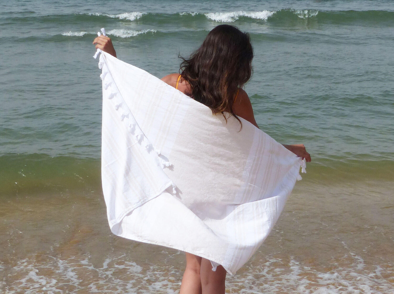 Полотенце для хаммама как компактная альтернатива полотенцу. Так называемые пестемали происходят из османской купальной культуры. Их всегда использовали для сушки в турецкой паровой зоне. Сегодня стильные шарфы можно использовать по-разному. Будь то для занятий спортом, в качестве обертывания в сауне и в велнес-центре, в качестве полотенца, пляжного полотенца, парео, одеяла для пикника или скатерти. Благодаря влагопоглощающим свойствам и легкости полотенца очень быстро сохнут, а также занимают мало места в сумке. Универсальное полотенце размером 90х170 см изготовлено из 100% хлопка плотностью материала 230 г/м². . Простую в уходе пляжную простыню бежевого цвета можно стирать при температуре до 60°C и сушить в стиральной машине.