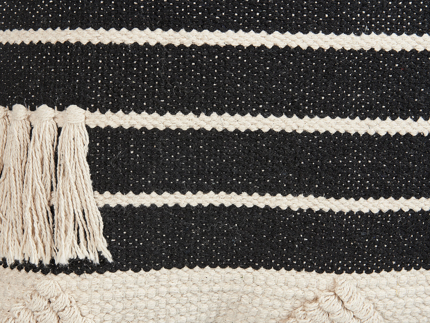 Декоративная подушка ручной работы в стиле бохо. Украсьте свою гостиную или спальню этой хлопковой подушкой ручной работы. Уникальный текстурированный узор в виде полос и треугольников дополнен кисточками, придающими подушке нотку стиля бохо. Благодаря застежке-молнии чехол подушки можно легко снять и почистить.Детали: Тип: Декоративная подушка Стиль: Классический Цвет: Бежевый, Черный Тип материала: Ткань Материал: Хлопок Наполнитель: Полиэстер Состав: 100% Хлопок Форма: Квадратная Ручная работа: Да Узор: Геометрический узор Размеры: Глубина: 50 см Ширина: 50 см Высота: 10 см Вес наполнения: 540 кг Вес: 1 кг Вы покупаете: 1 декоративная подушка Преимущества продукта: Высококачественный материал, точность ручной работы, прекрасно подходит для сна и жилых помещений, создает уют в любой комнате. Съемный чехол. Сборка: Сборка не требуется. Дополнительная информация: Подушка упакована в вакуумную упаковку. Достаньте подушку из упаковки и оставьте на 24 часа, пока она не достигнет полной плотности. Каждое изделие сделано вручную и уникально; Поэтому цвет и рисунок могут отличаться от фотографии. Рекомендации по уходу: Хлопок: 1. Тщательно пылесосьте поверхности с помощью подходящей насадки. 2. Пятна можно удалить с помощью средства для чистки обивки, влажной губки или мягких чистящих средств.