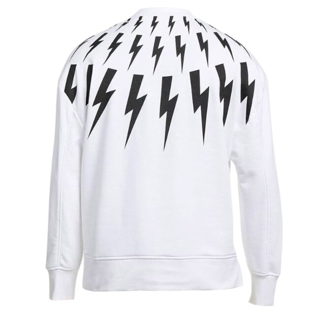 Белая толстовка Neil Barrett с фирменным принтом 'Thunderbolt'. Состав: 65% хлопок, 35% полиэстер.