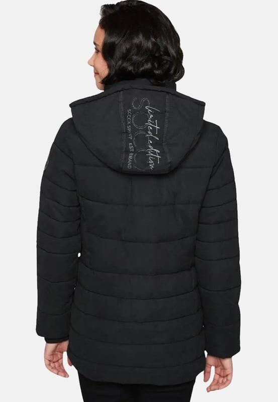 Эта женская стеганая куртка - идеальный спутник на зиму. Он имеет теплую подкладку и его можно комбинировать разными способами. Удобный крой создает женственный силуэт и чрезвычайно удобен в ношении. Пушистая плюшевая подкладка в воротнике-стойке и в верхней части тела обеспечивает ощущение уюта и благополучия. Куртка закрывается на молнию. Капюшон можно регулировать с помощью шнурка или при необходимости снимать на молнии. Воротник-стойка также защитит от холода и ветра. Рукава имеют ребристые манжеты для предотвращения проникновения холода. Мелкие предметы можно легко хранить или согревать руки в двух боковых карманах на кнопках. Принты с этикетками на капюшоне и рукавах завершают дизайн. С этой курткой стильный зимний образ гарантирован.