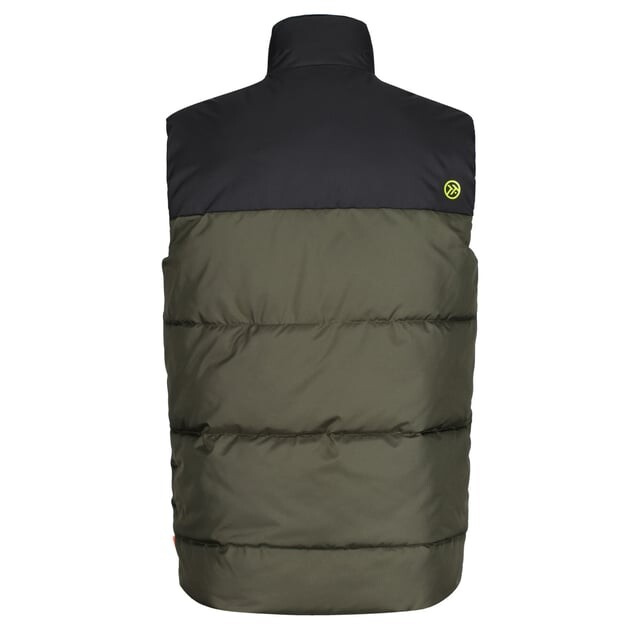 Материал: 100% полиэстер. Материал: переработанный пластик. Дизайн: контрастный, логотип. Технология ткани: тяжелая, водостойкая. Тип рукава: Без рукавов Вырез: воротник-стойка. Застежка: молния. Устойчивость: Экологичность.