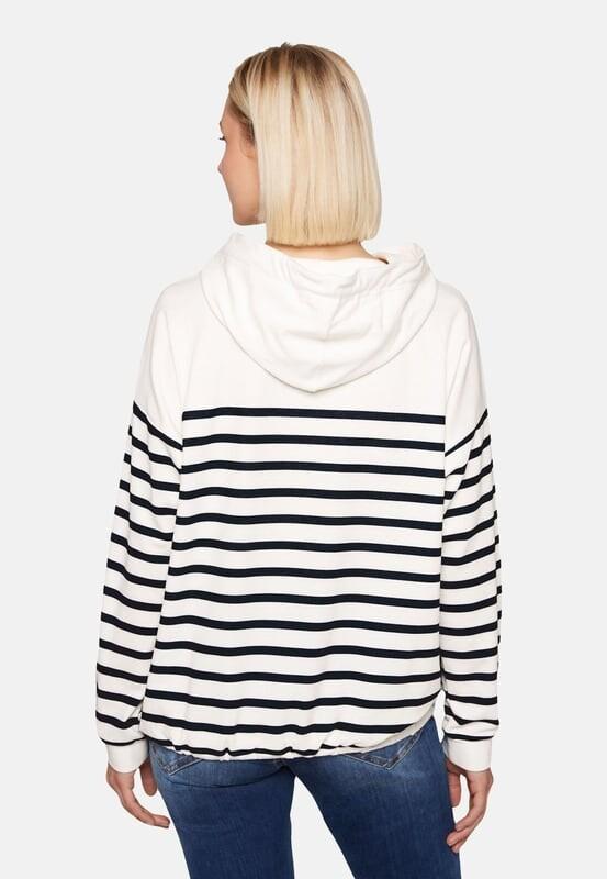 Эта женская толстовка с капюшоном – вневременная и простая в создании стиля вещь. Он изготовлен из мягкого высококачественного материала, приятного на ощупь и обеспечивающего высокий уровень комфорта. Рукава отделаны обычными манжетами, а на поясе имеется широкая резинка, обеспечивающая идеальную посадку. Капюшон затягивается плоскими шнурами. Вырез на плечах придает свитеру повседневный вид. Толстовка имеет классный узор в полоску. Крупный принт спереди подчеркнут стразами и идеально завершает дизайн худи.