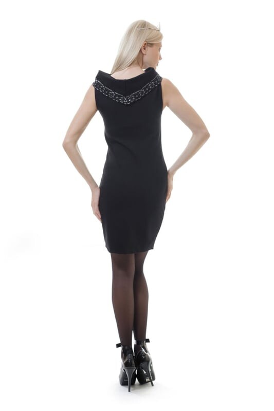 Обнажите плечи в этом изысканном мини-платье от 2-Young. Эта сексуальная классика украшена замысловатым блестящим кружевом вдоль выреза, открывающего плечи, обнажая элегантный участок кожи. Изготовлен из эластичной ткани, подчеркивающей фигуру. Без рукавов.